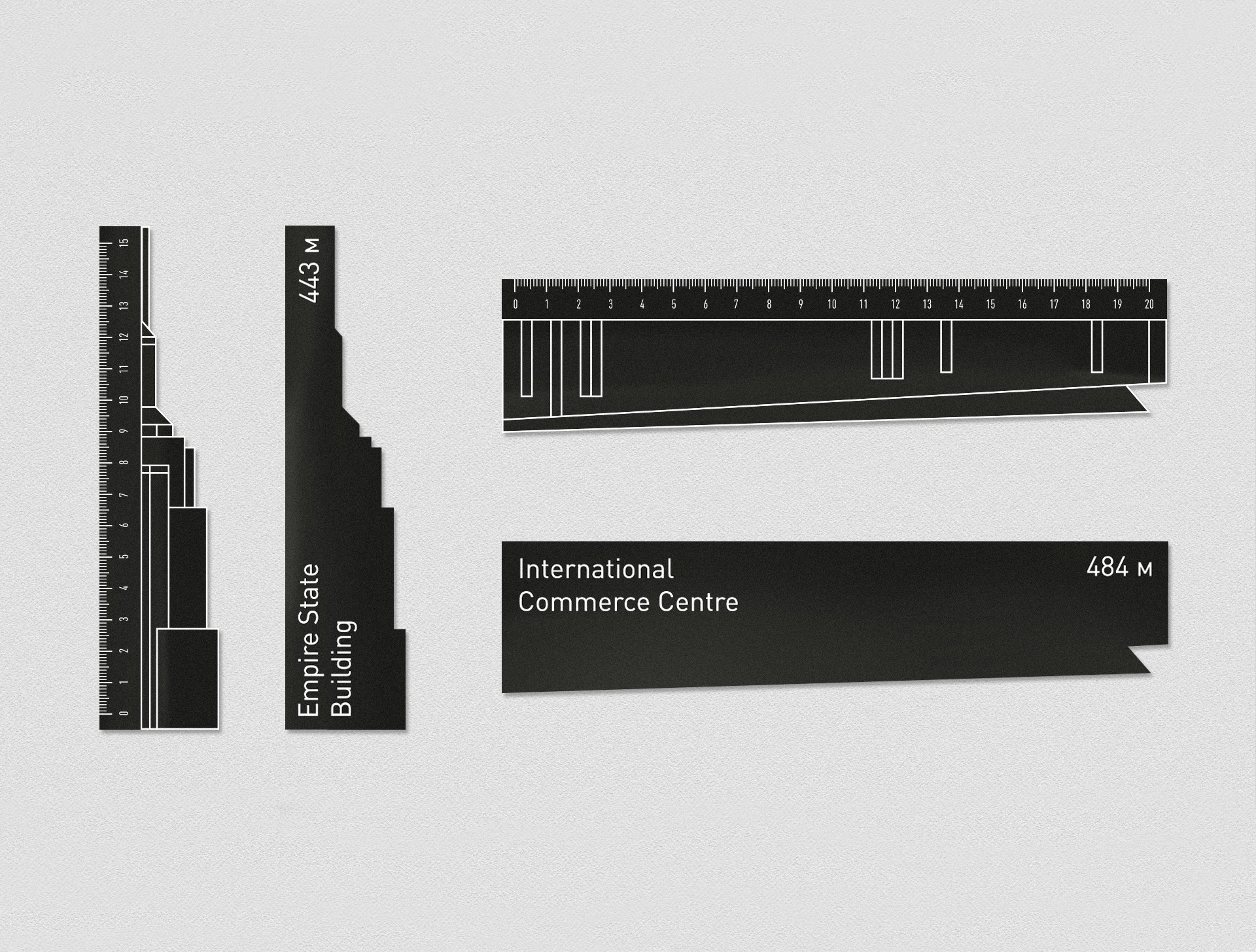 The metaphor of the brand is the height inherent in all skyscrapers. It is reflected in the “floors”, supplemented by growing letters. FF DIN was used in the identity because of “industrial” design of the font.