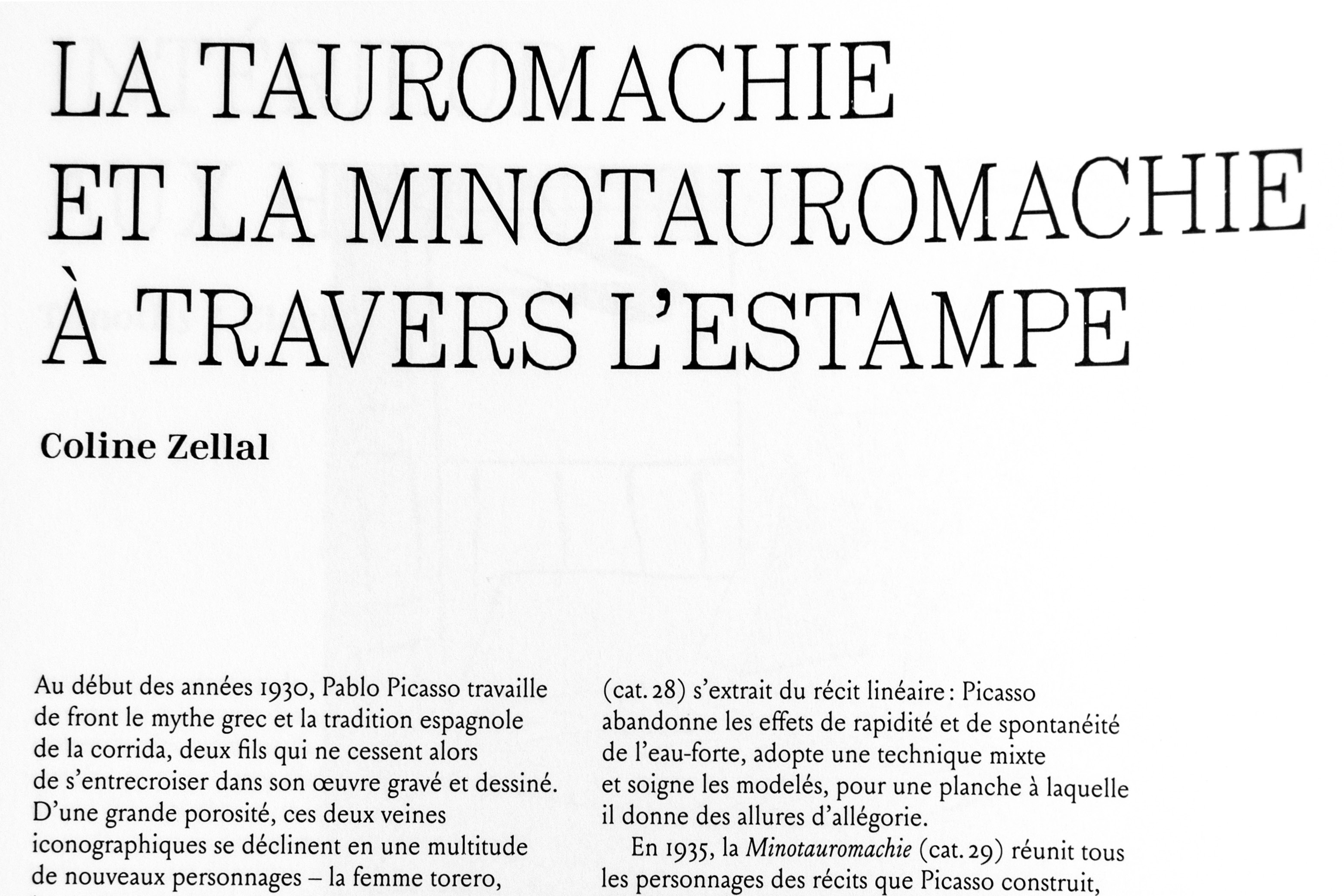The in-house designers at Gallimard set the book with Minotaur, a typeface that was originally conceived for (but eventually never used by) the Musée Picasso where the exhibition takes place. Minotaur’s name is a reference to Picasso’s obsession for this creature and its no surprise that in such a book, the name would eventually appear and be set with the typeface! Body text is typeset with Louize, a revival of Perrin’s Augustaux by Matthieu Cortat (see also Alice Savoie’s review).