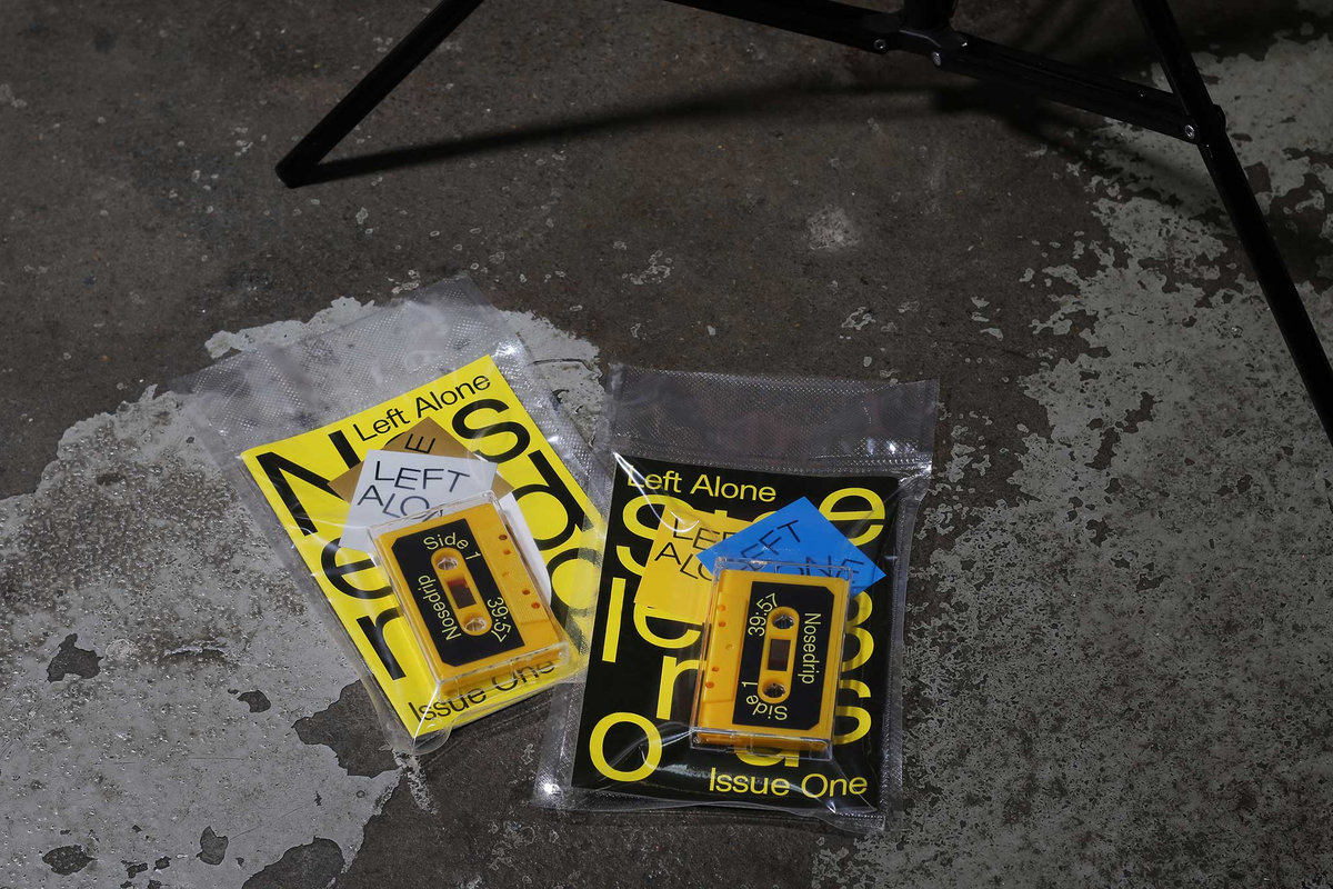 Issue one features interviews with Nosedrip and Steele Bonus, alongside some artwork from Lucien Lucien, plus an exclusive yellow C90 cassette with a mix from both Nosedrip and Steele along with some Left Alone stickers. The zines are 32pp printed full colour A5, on 130gsm gloss stock, in an original limited run of 50.