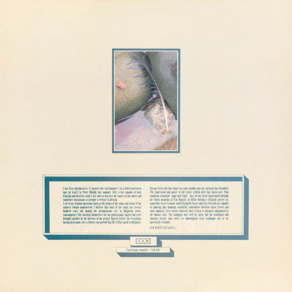 Album art for 4AD’s reissue of Le Mystère des Voix Bulgares from 1986, designed by 23 Envelope. Under this name, Vaughan Oliver (graphic design and typography) and Nigel Grierson (photography) worked together to create the artwork for almost all releases by the British record label until 1987, building up a distinctive visual identity.