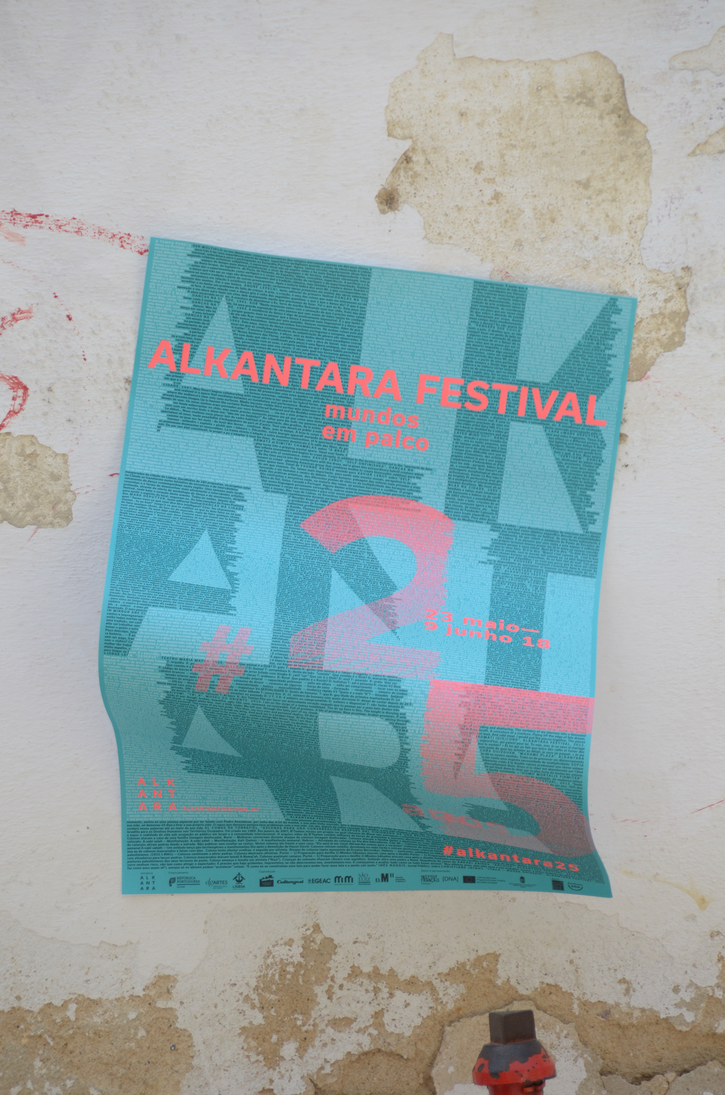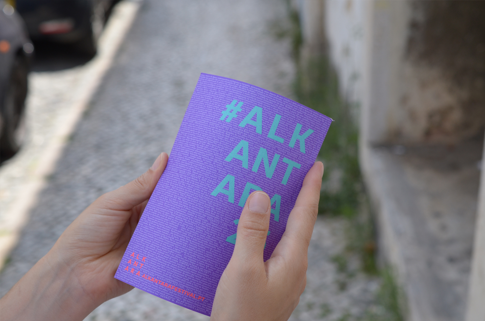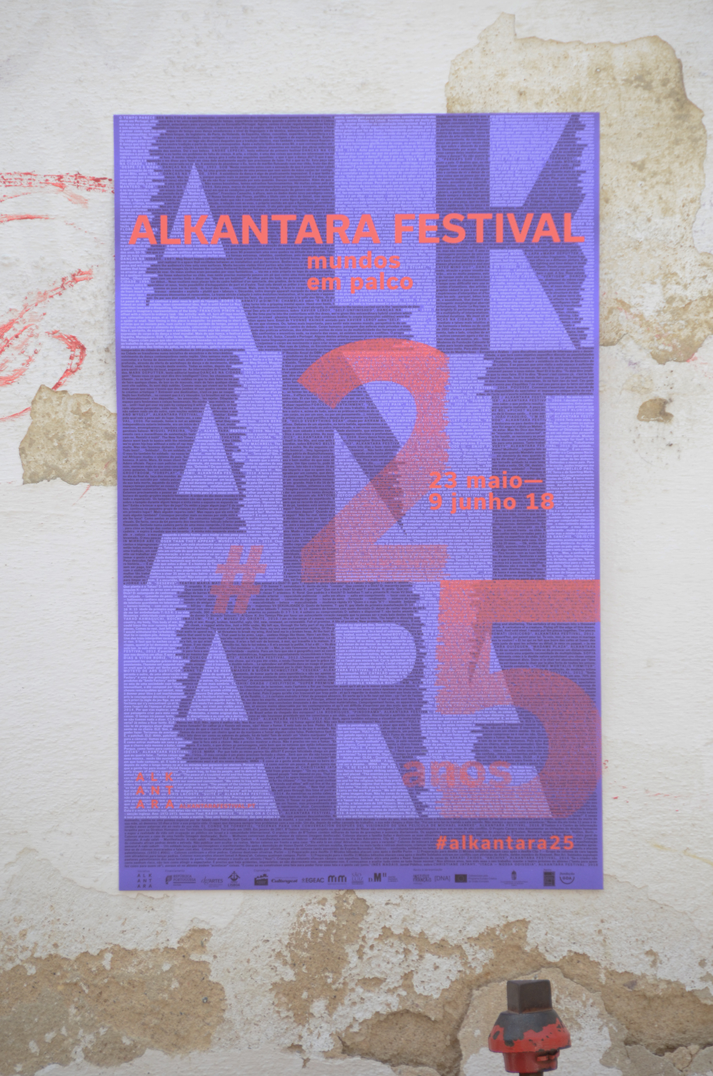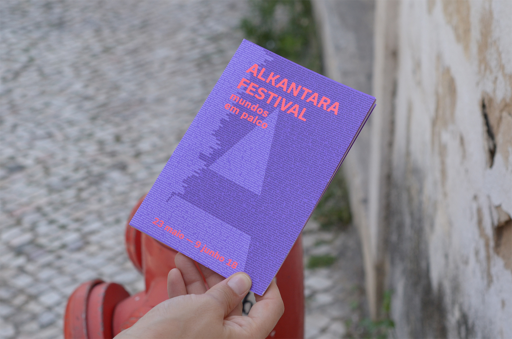 The visual identity of the 2018 Alkantara Festival, designed by Ana Teresa Ascensão, using the typeface Usual, is based on a 8,000-word collection of texts from the Alkantara archives. Excerpts from performances and catalogues, written by artists, artistic directors, journalists, and others, underlay this year’s commemorative program and provide possible readings of the 25-year history of Alkantara/Danças na Cidade.