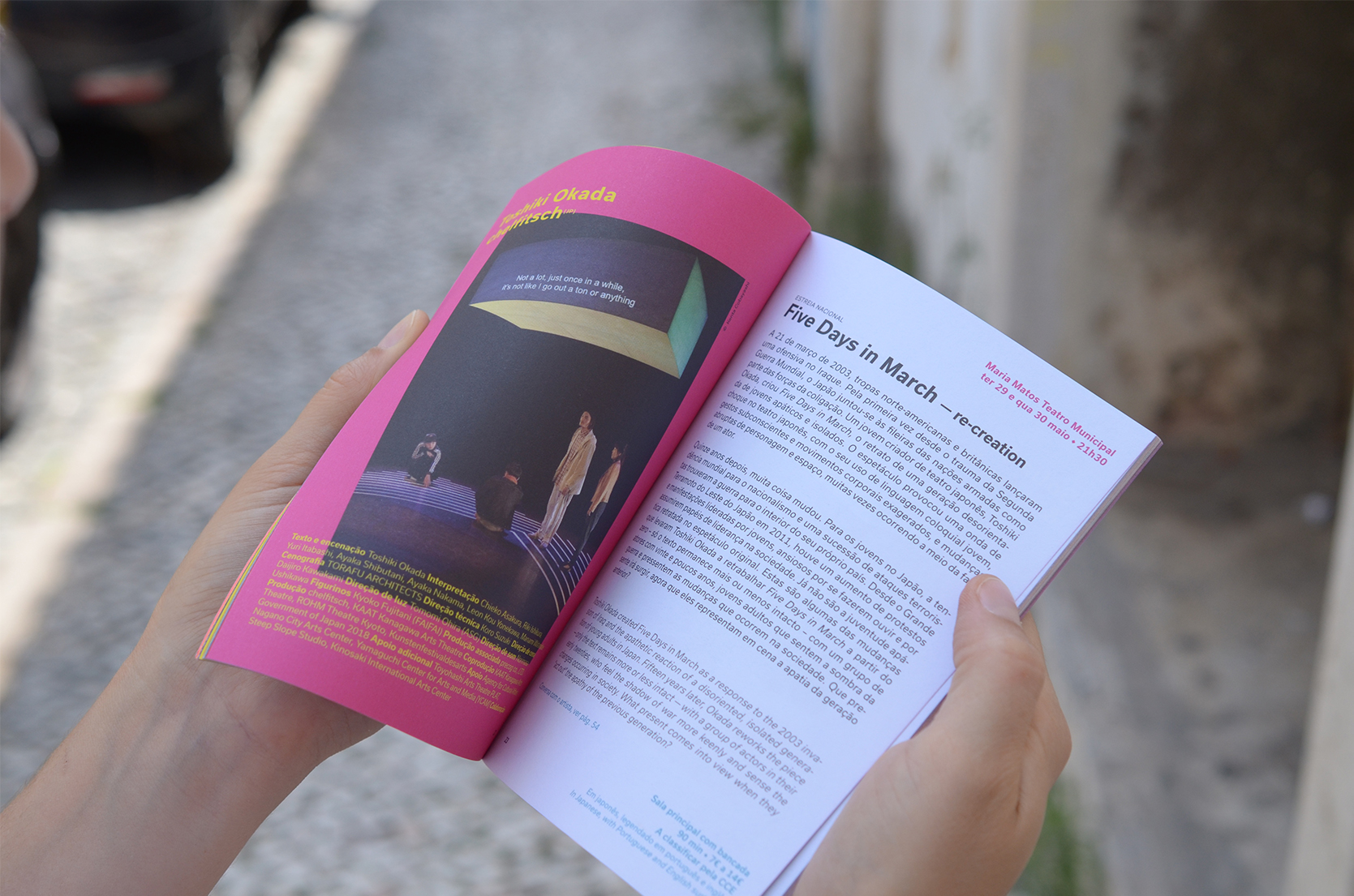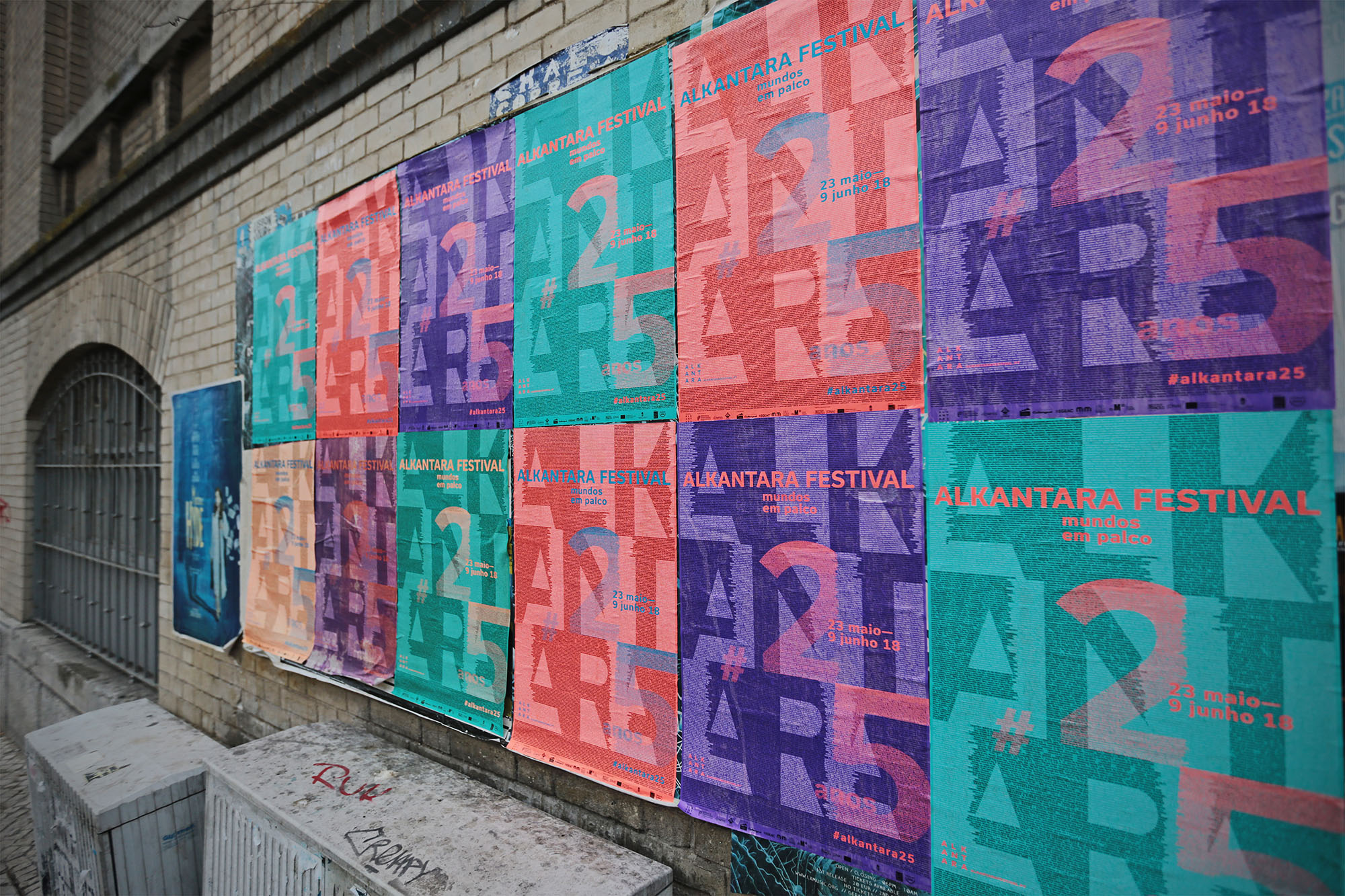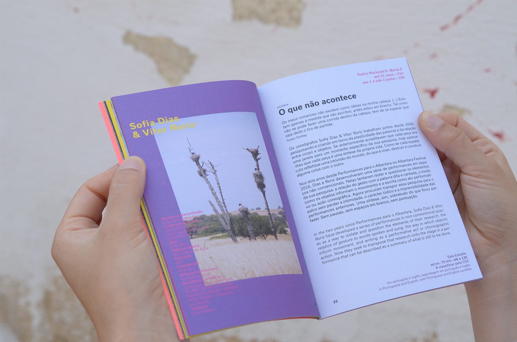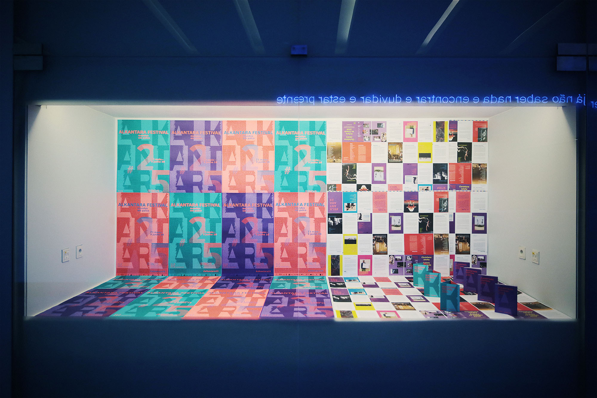 The visual identity of the 2018 Alkantara Festival, designed by Ana Teresa Ascensão, using the typeface Usual, is based on a 8,000-word collection of texts from the Alkantara archives. Excerpts from performances and catalogues, written by artists, artistic directors, journalists, and others, underlay this year’s commemorative program and provide possible readings of the 25-year history of Alkantara/Danças na Cidade.