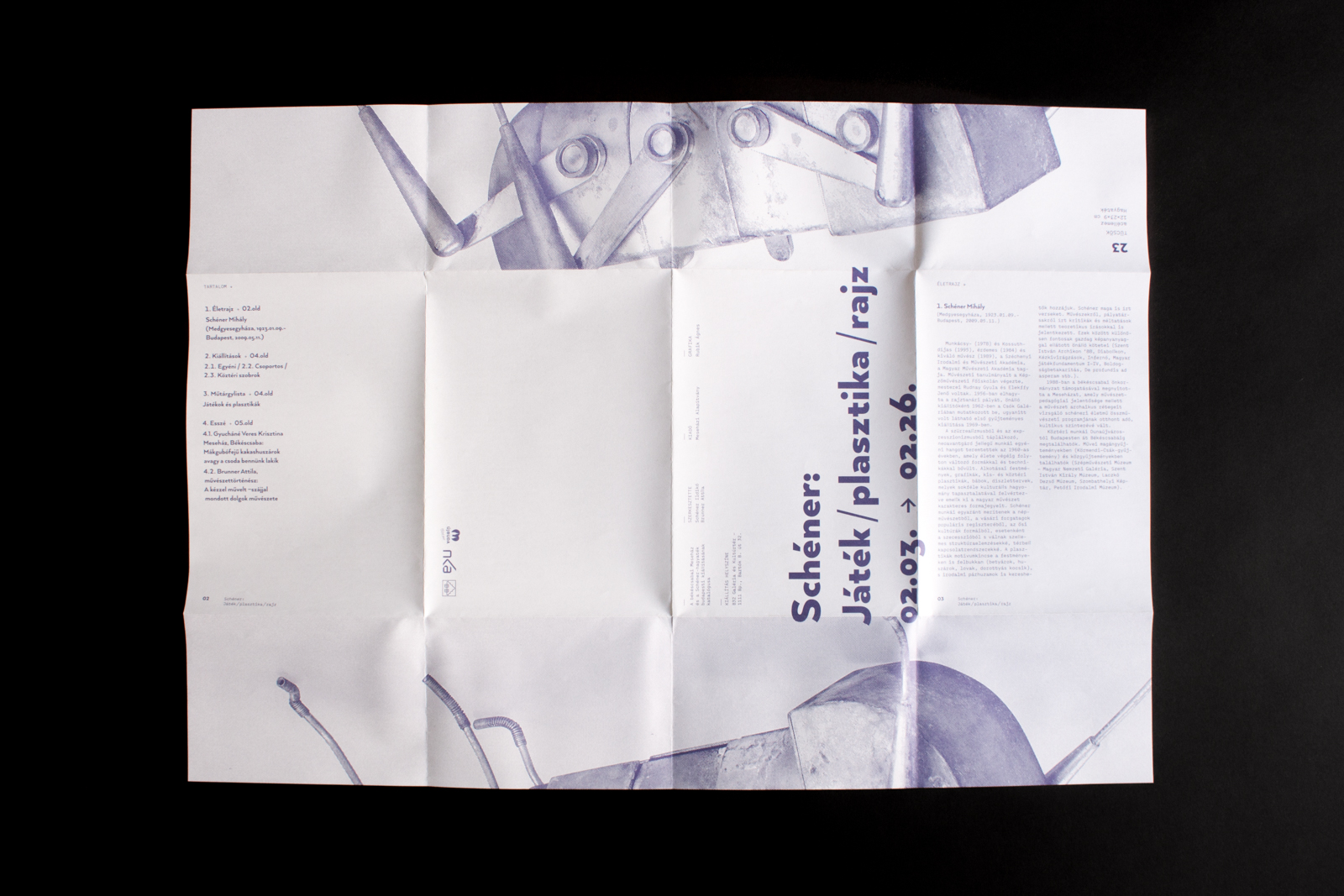 A friend of mine arranged an exhibition of her grandfather’s, Mihály Schéner’s sculptures, toys, and drawings. I designed the posters, flyers and a brochure for the exhibition as well as a promotional present for guests at the opening night, a 3D puzzle based on one of the exhibited toys. The main typeface is Arquitecta, assisted by Menoe Grotesque for body copy.