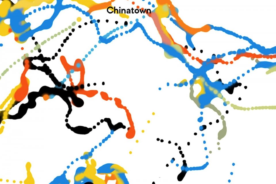 Once the painting tool is loaded into your mobile web browser, you can begin to draw simply by walking: walk fast and the lines transform into drops, stand still and the ink will begin to pool and bleed. When you go out with a group, the collaborative image is synced between devices in real-time and up to 200 people can draw simultaneously in one area.