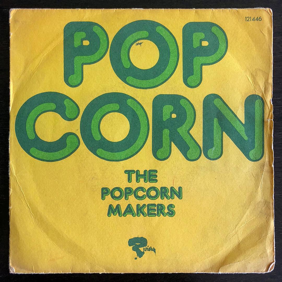 Single record cover for the French release of “Popcorn”, as performed by The Popcorn Makers. The b-side features another track with a gastronomic title: “Toad In The Hole”.