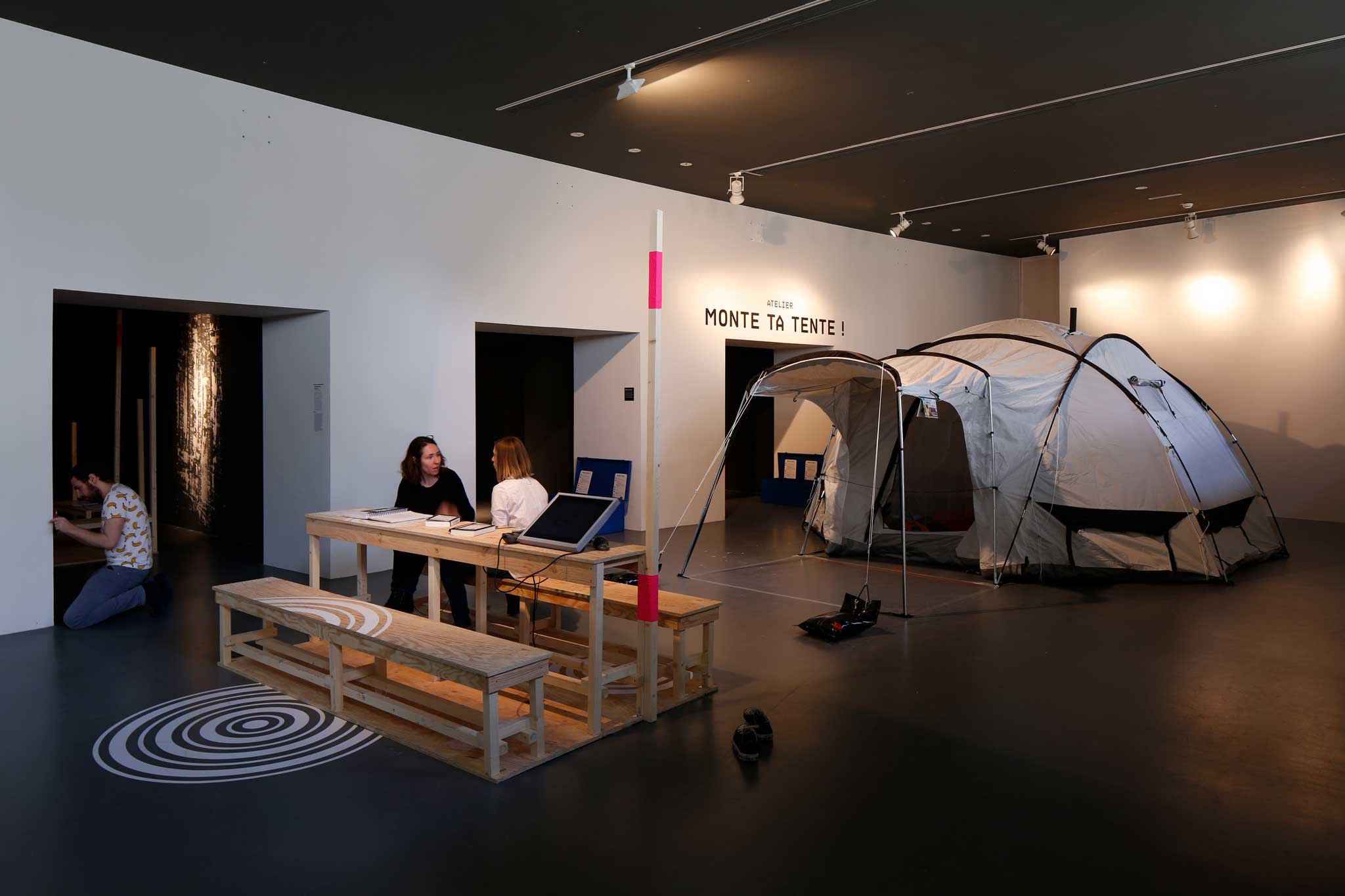 The exhibition Habiter le campement (Living in the camp) questions the new spaces and life of nomadic populations. This exile, often hoped to be temporary, has evolved into a permanence that obliges its inhabitants to create a new societal mode.