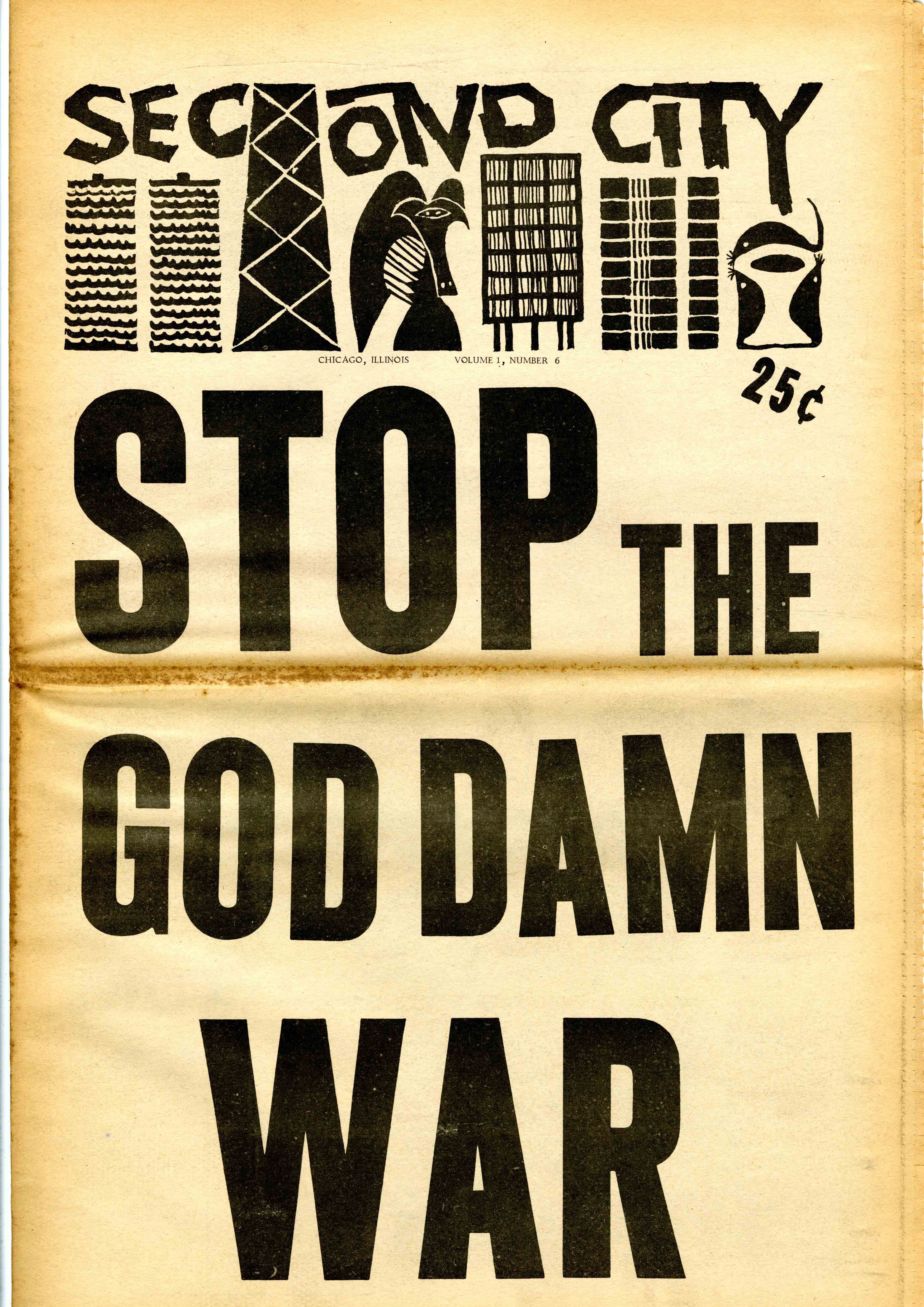The editors of Second City declared the purpose of the paper in the first issue published on November 23, 1968: “Second City is not intended to be just another ‘underground’ newspaper. Second City is intended to be a voice of the Movement in Chicago… It will be owned and managed democratically by its staff which will represent the entire spectrum of all those engaged in the struggle against war, racism, poverty, oppression, and the denial of civil and human rights.” — Graeme Evenson, DePaul University Library