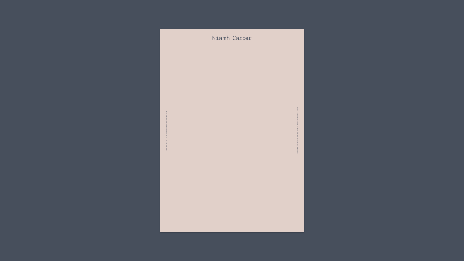 Niamh’s new logo is set in Heimat Mono. All other text is set in Space Mono.