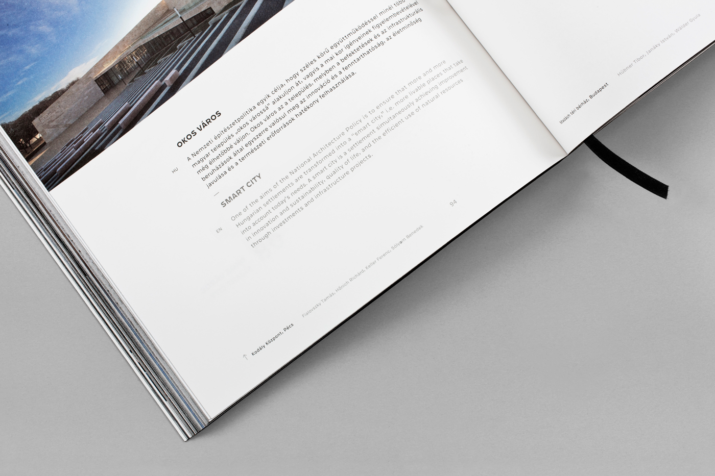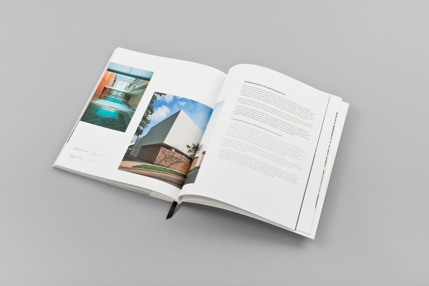 The bilingual book utilizes a clean and elegant layout in favour of the spectacular photographs and is divided into different sections organized to follow the directions provided by the agenda.