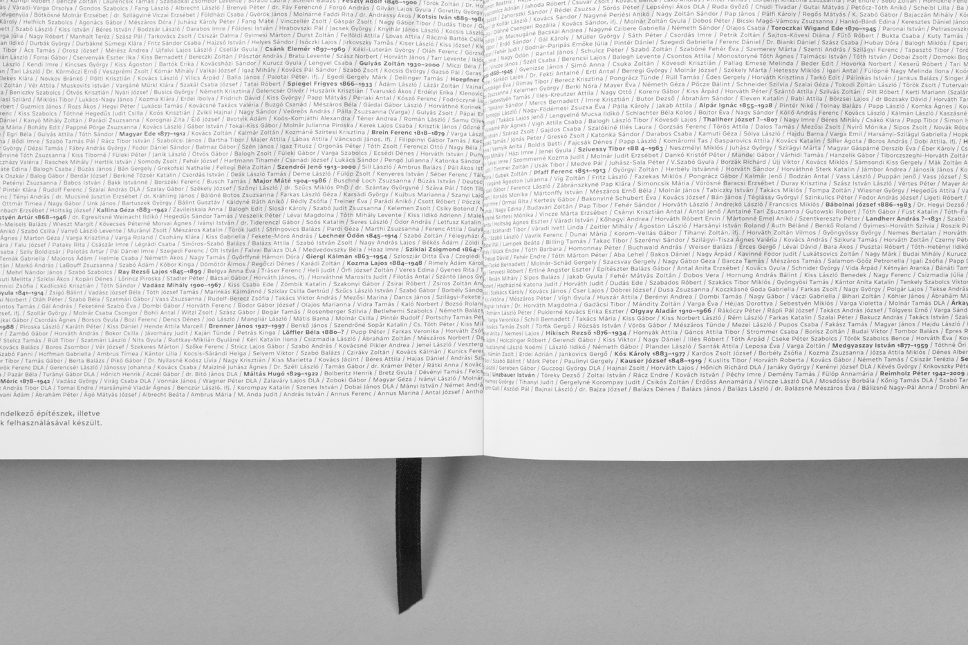 The book Nemzeti Építészetpolitika (“National Architecture Policy”) features 101 buildings designed by well-noted Hungarian architects. Titles and text are set in Westeinde, a geometric typeface by Hungarian type designer Ádám Katyi.