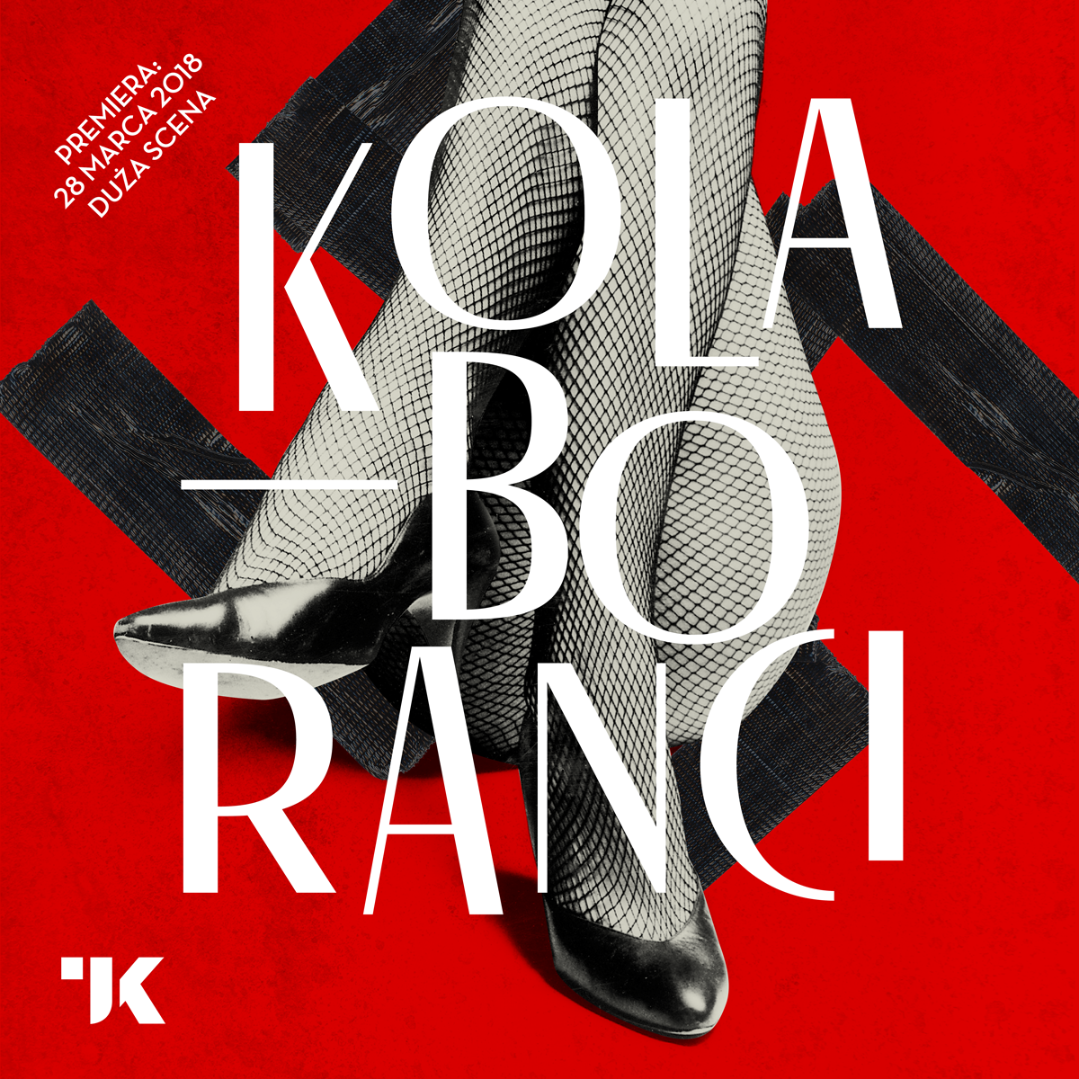 The theater presented the drama Kolaboranci by Maria Marcinkiewicz-Górna under the artistic direction of Kaja Amande. The communication was designed by Krzysztof Iwanski, with the typeface Le François, created by Damien Gautier and available on 205TF. The small type is in Steagal.