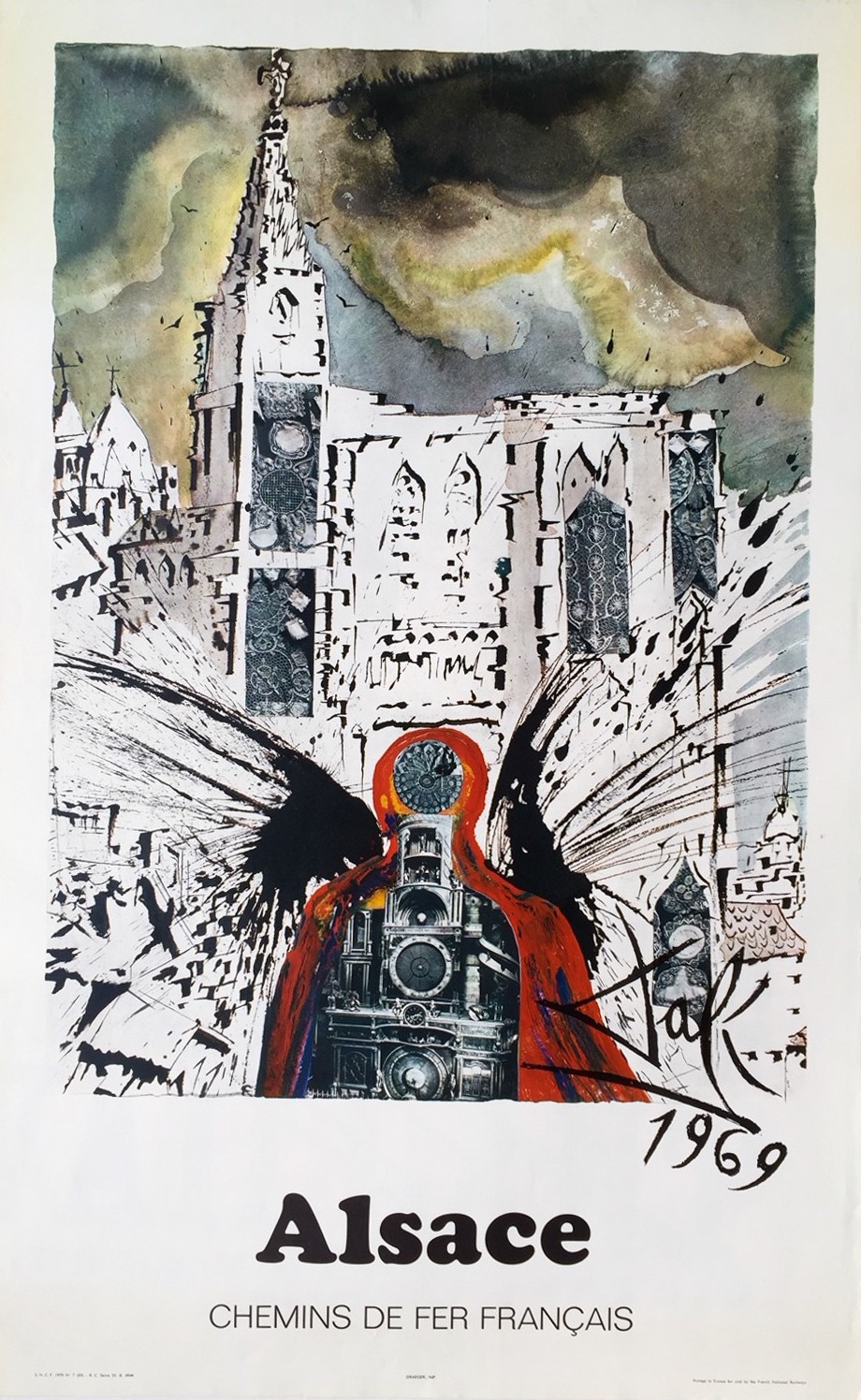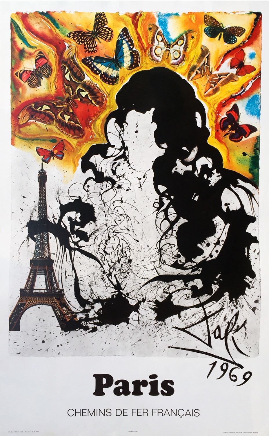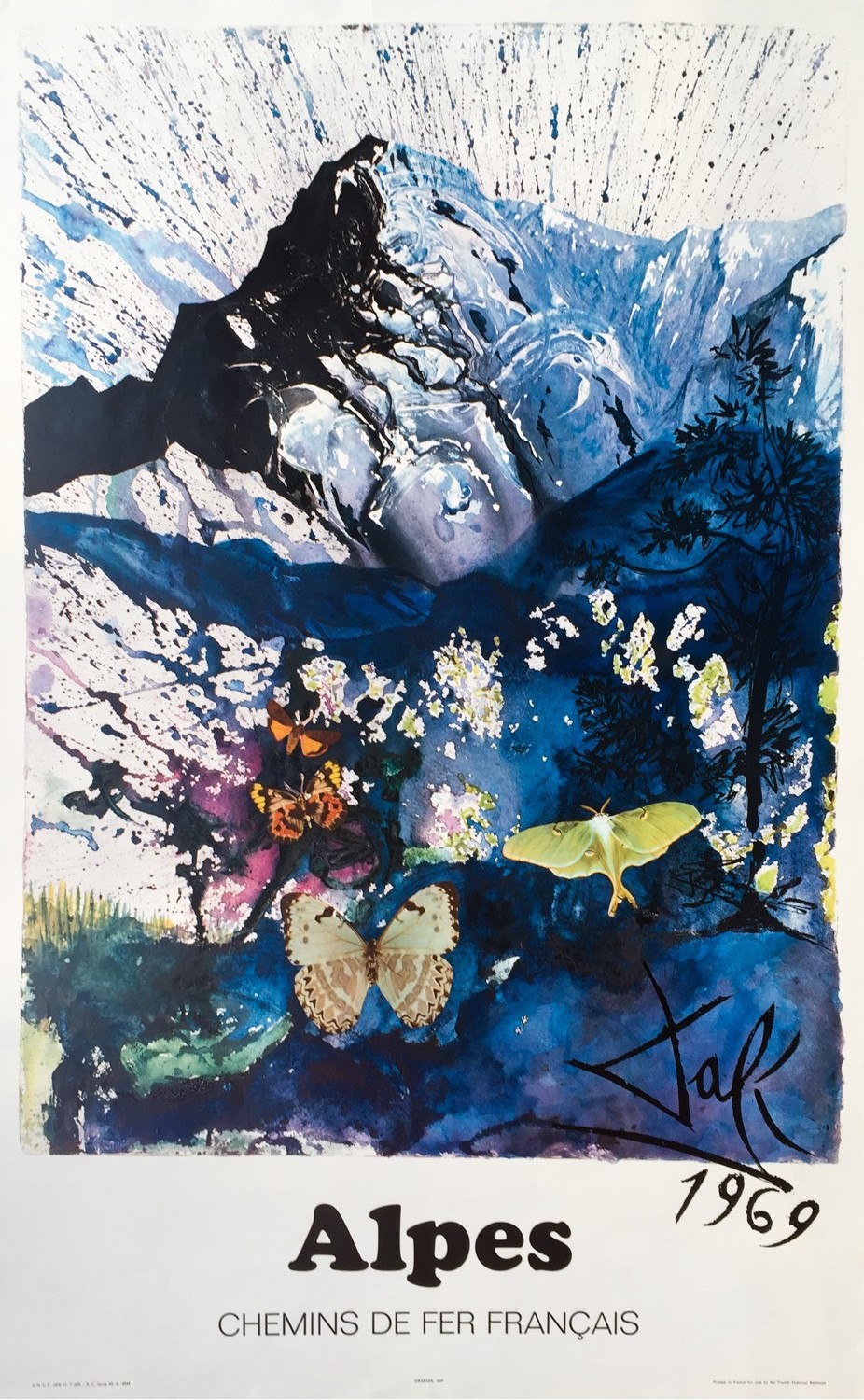 Promotional posters for the SNCF (Société nationale des chemins de fer français / French National Railway Company) made by Salvador Dalí in 1970. On each poster, a region of France is depicted(?) in an image with butterflies – that’s why this poster series is also known as “the Butterfly Suite”.