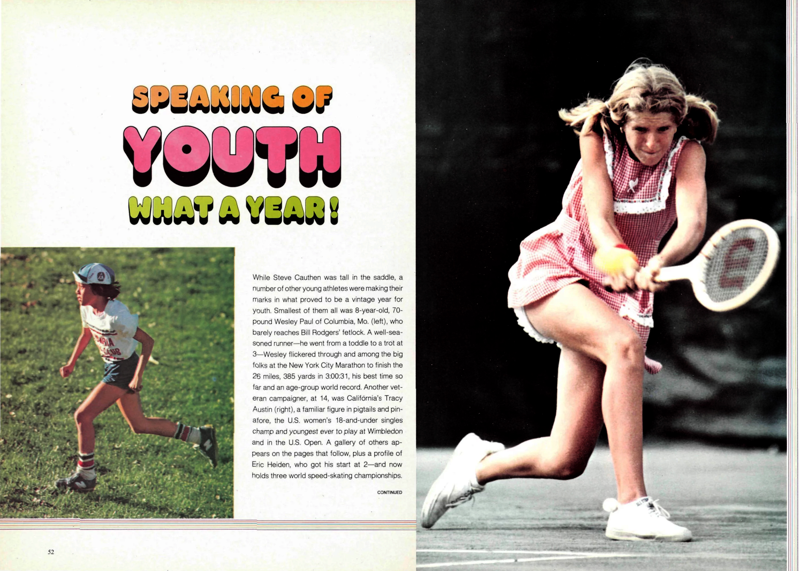 Sports Illustrated sometimes used W. Seifert’s Too Much Shaded in the 1970s. It may have been most fitting with this very issue. On the cover Sportsman of the YearSteve Cauthen is featured. In his second year of riding, he won the U.S. Triple Crown, while still a teenager. Also featured in this issue, speed skater Eric Heiden, runner Wesley Paul, and tennis player Tracy Austin.