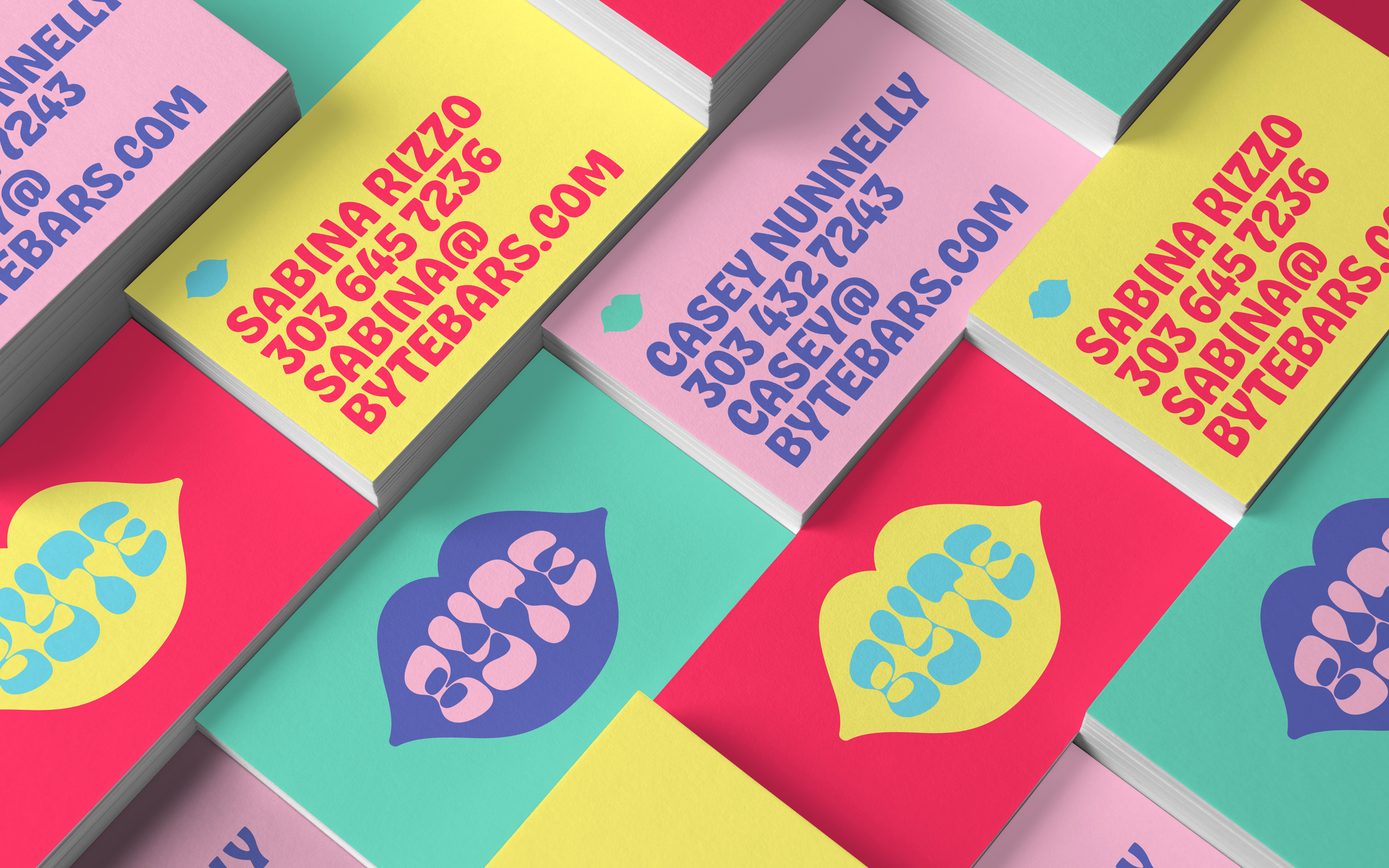 Byte Bars is a brand of delish snacks from Denver, Colorado. The identity conceived by Cast Iron Design is based on mouth and tongue illustrations, a vibrant color palette, and the Cheee typeface by James Edmondson. Cast Iron Design writes: