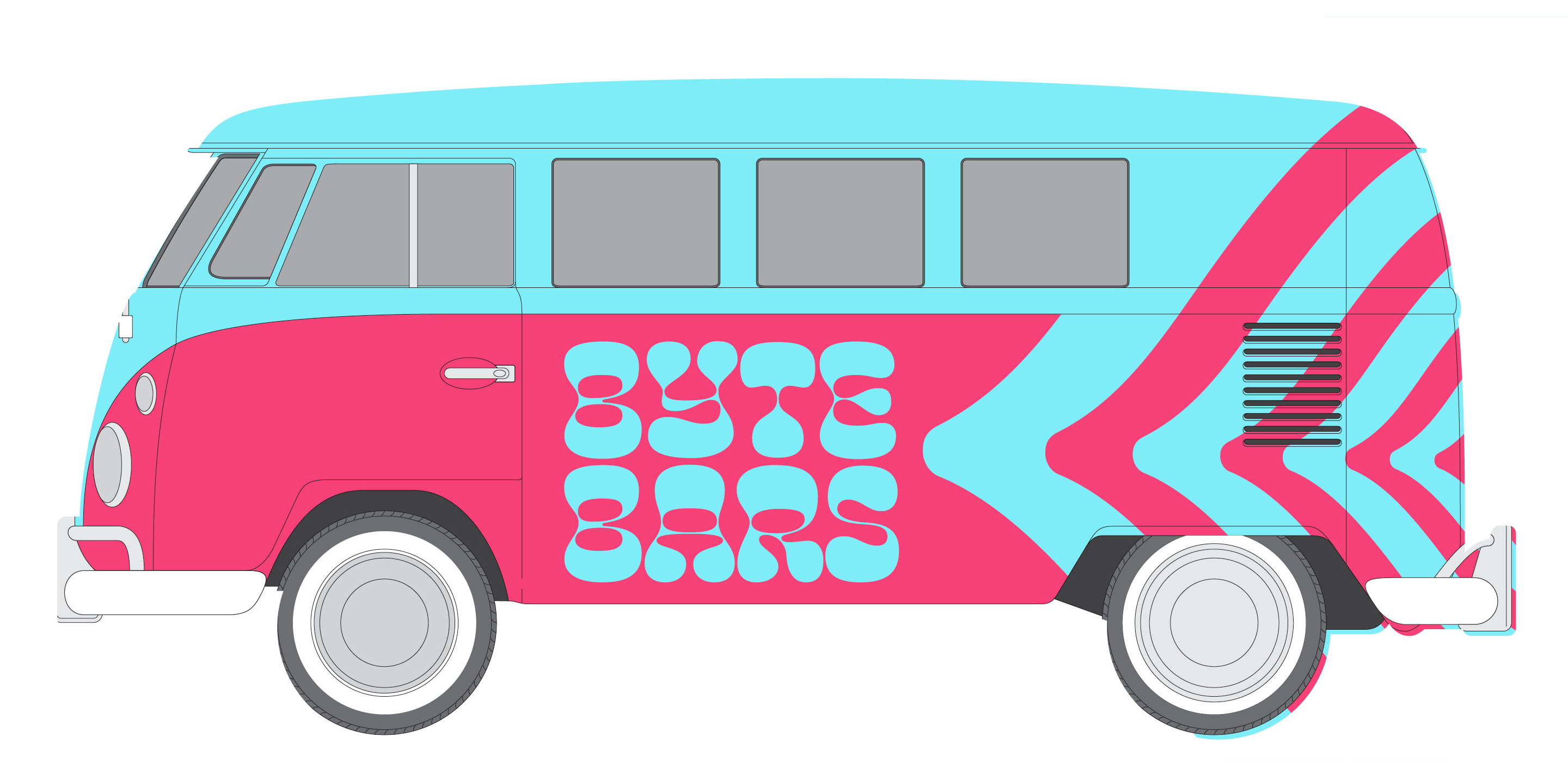 Representing a cross-generational, free-spirited vibe, the shapes of the type and icons are influenced by the groovy 1960s and the vivid color palette is drawn from the electric poppiness of the 80s and early 90s.