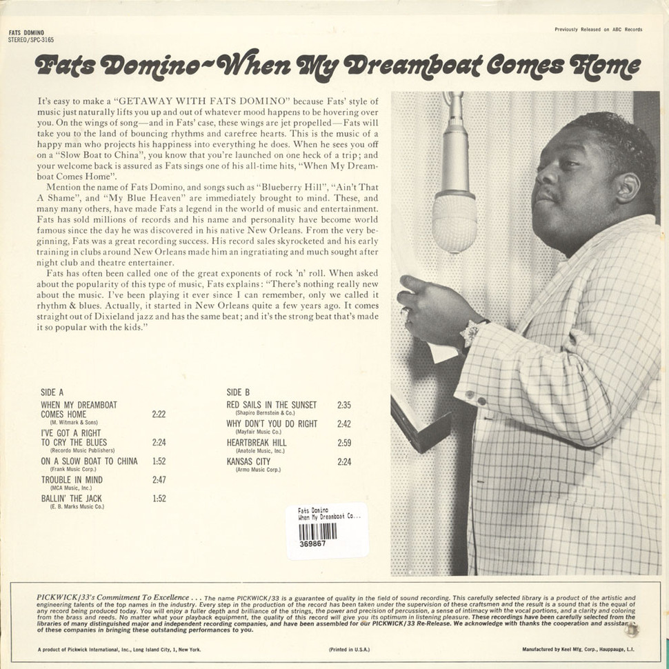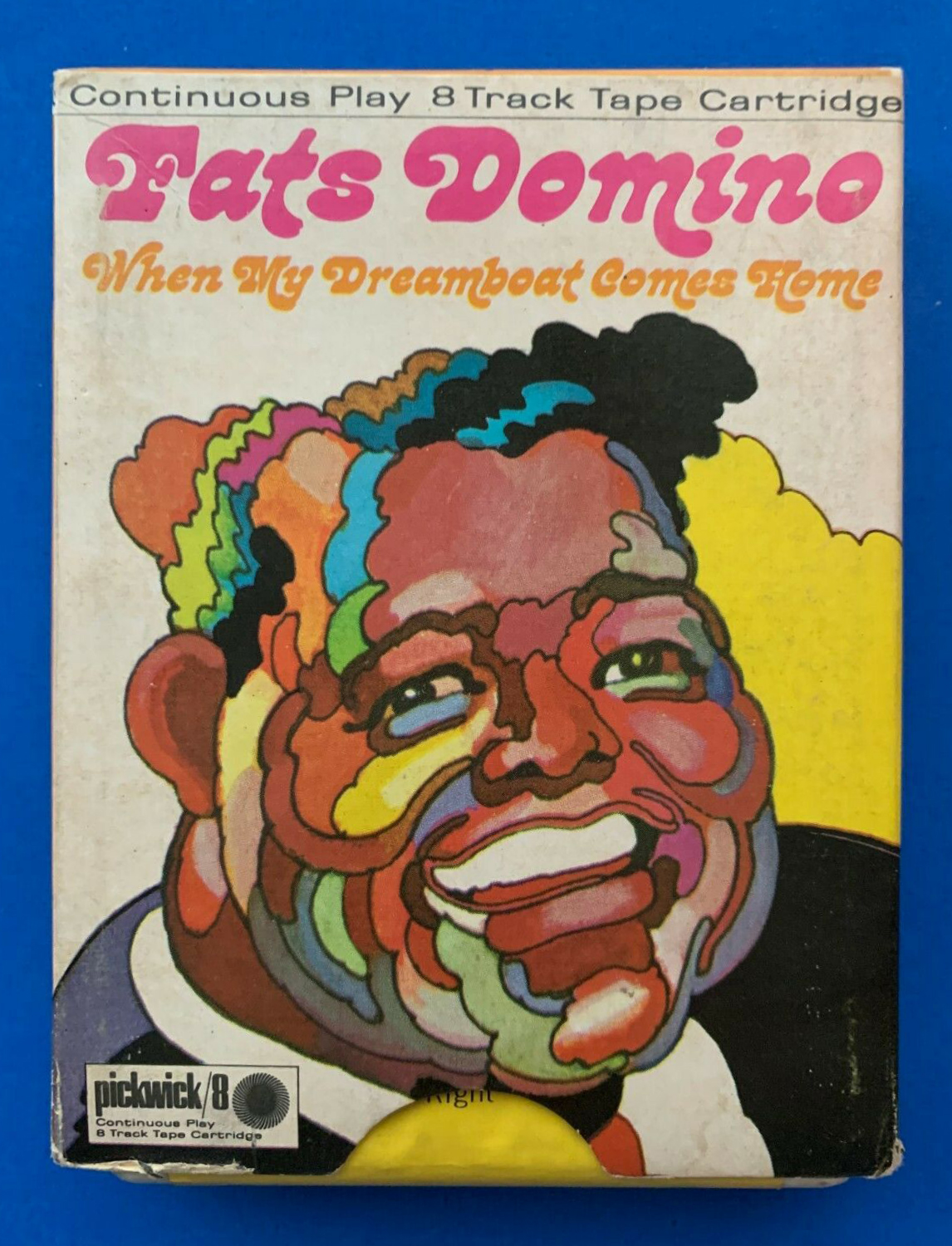 The cardboard sleeve to an 8-track tape cartridge offers less space than the cover for a 12″ vinyl record. Instead of scaling the illustration down beyond recognition, just a detail with Domino’s face was used. The type was rearranged accordingly, too.