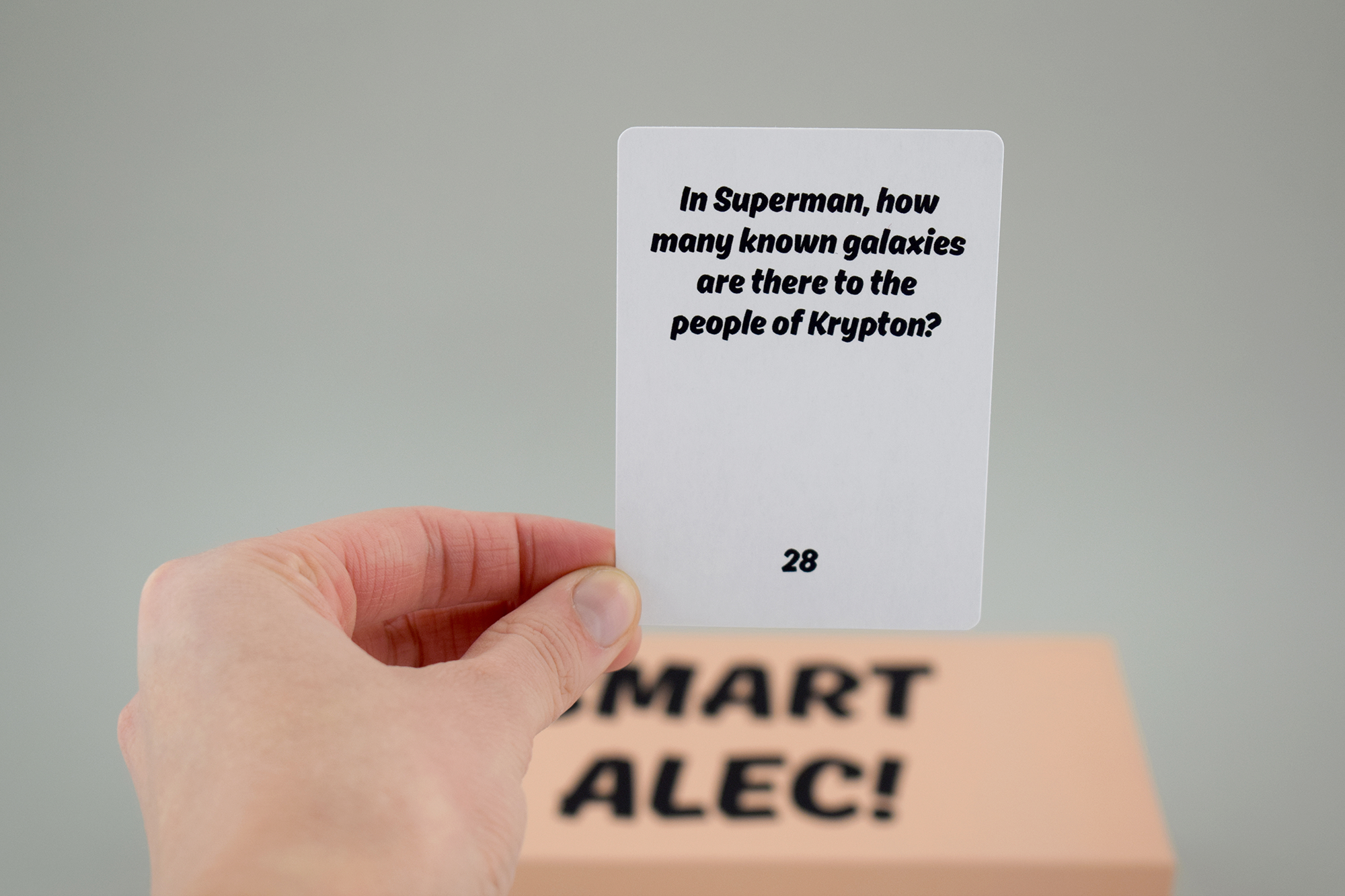 Smart Alec! card game Contributed by Luke Dodridge on Aug 14th, 2018. Artwork published in circa 2017. Source: lukedodridge.com License: All Rights Reserved. Smart Alec! is one for the know-it-alls. It is a card quiz game where players answer numerical based questions and place their bets on how correct they think they are. It uses Ahkio designed by Mika Melvas to give a light hearted and playful feel. License: All Rights Reserved. Source: lukedodridge.com License: All Rights Reserved. Source: lukedodridge.com License: All Rights Reserved. Typefaces More about AhkioGet Ahkio Formats Object/Product (1127) Topics Product (2080) Entertainment (1518) Designers/Agencies Luke Dodridge (8) Tagged withcard games (54)games (97)multiplayer games (3)numerals (1072)one typeface (1746)big type (1716)fun (29) Artwork location United Kingdom (3261) London (1804) In Setscool (Karo Konieczna) (871) Post a comment Name Email – will not be published Website Your response Submit Comment More in Product Joaomglhs2022Studio TripleContributed by Jérémy Landes (Studio Triple) Staff Pick Futurola rolling papersc. 2020unknownContributed by Amijai Benderski Stilla promo1974Herb LubalinContributed by Stephen Coles Staff Pick Sponsor More in Object/Product YaleWomen2024.Oddity StudioContributed by Margot Lévêque Typefaces Staff Pick Mia san mehr2015Martin et KarczinskiContributed by Mona Franz type(chess)set2012Jim SutherlandContributed by Stephen Coles Staff Pick Parmizza2023unknownContributed by Nguyen Gobber More Fonts In Use Kherad Art House identity & poster series2018Studio MelliContributed by TPTQ Arabic Staff Pick Spring 2024 greeting card2024Véronique SimonContributed by PampaType Team Staff Pick Brotherhood of Man – “Kiss Me, Kiss Your Baby” international single covers1975Contributed by Johannes Vandenheuvel Staff Pick Tcho2007EdenspiekermannCarrois Type DesignSusanna DulkinysContributed by Stephen Coles Staff Pick Paper magazine2013Manos DaskalakisContributed by Parachute Staff Pick On Wings of Song by Thomas M. Disch (Bantam)1980Lou FeckunknownContributed by Florian Hardwig Staff Pick Thomas Naïm – On the Far Sidealbum art2023Rémy PoncetBrest Brest BrestContributed by Rémy Poncet Staff Pick Berlin 2030 klimaneutralc. 2022aufsiemitgebrüllContributed by Florian Hardwig Staff Pick