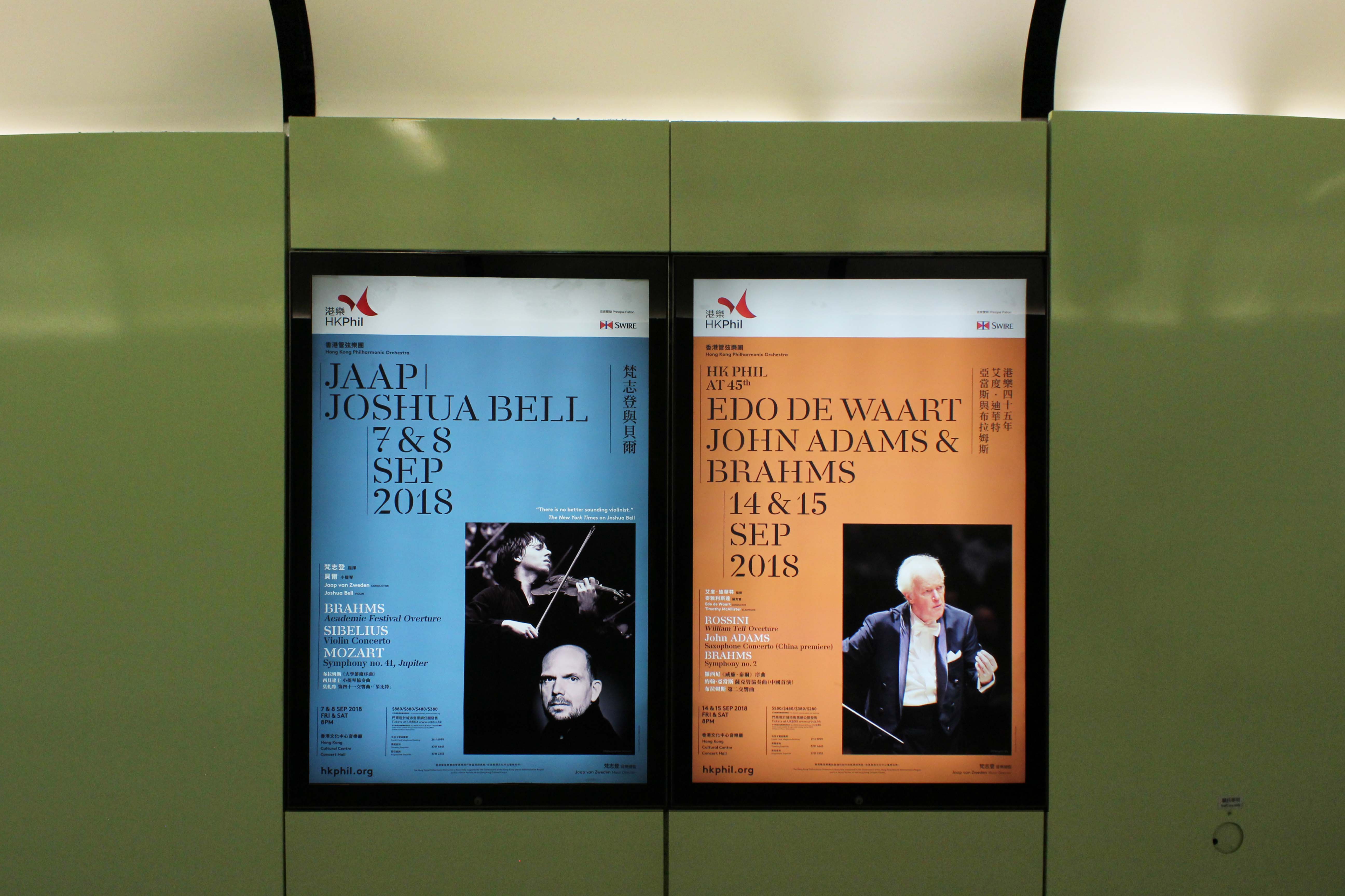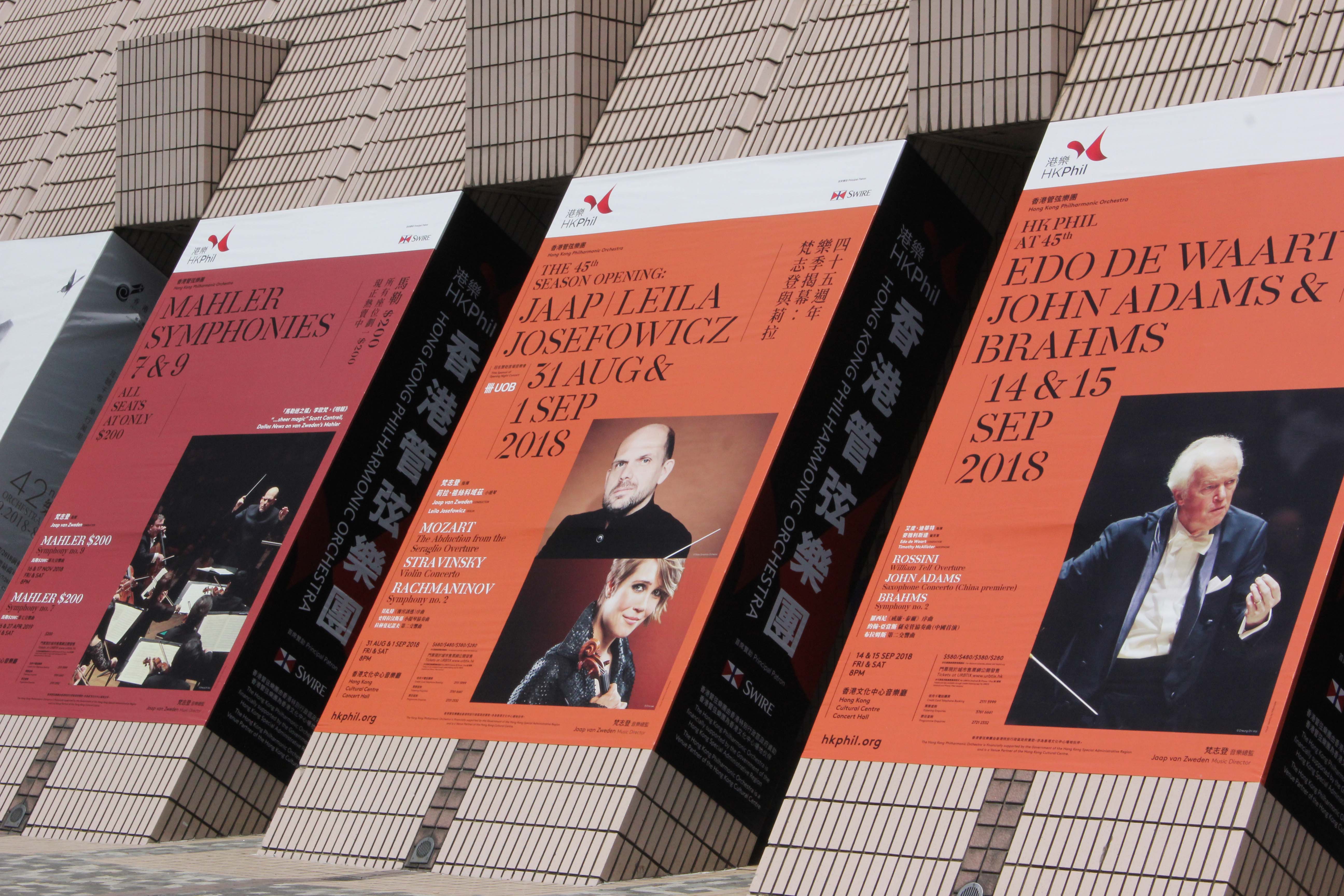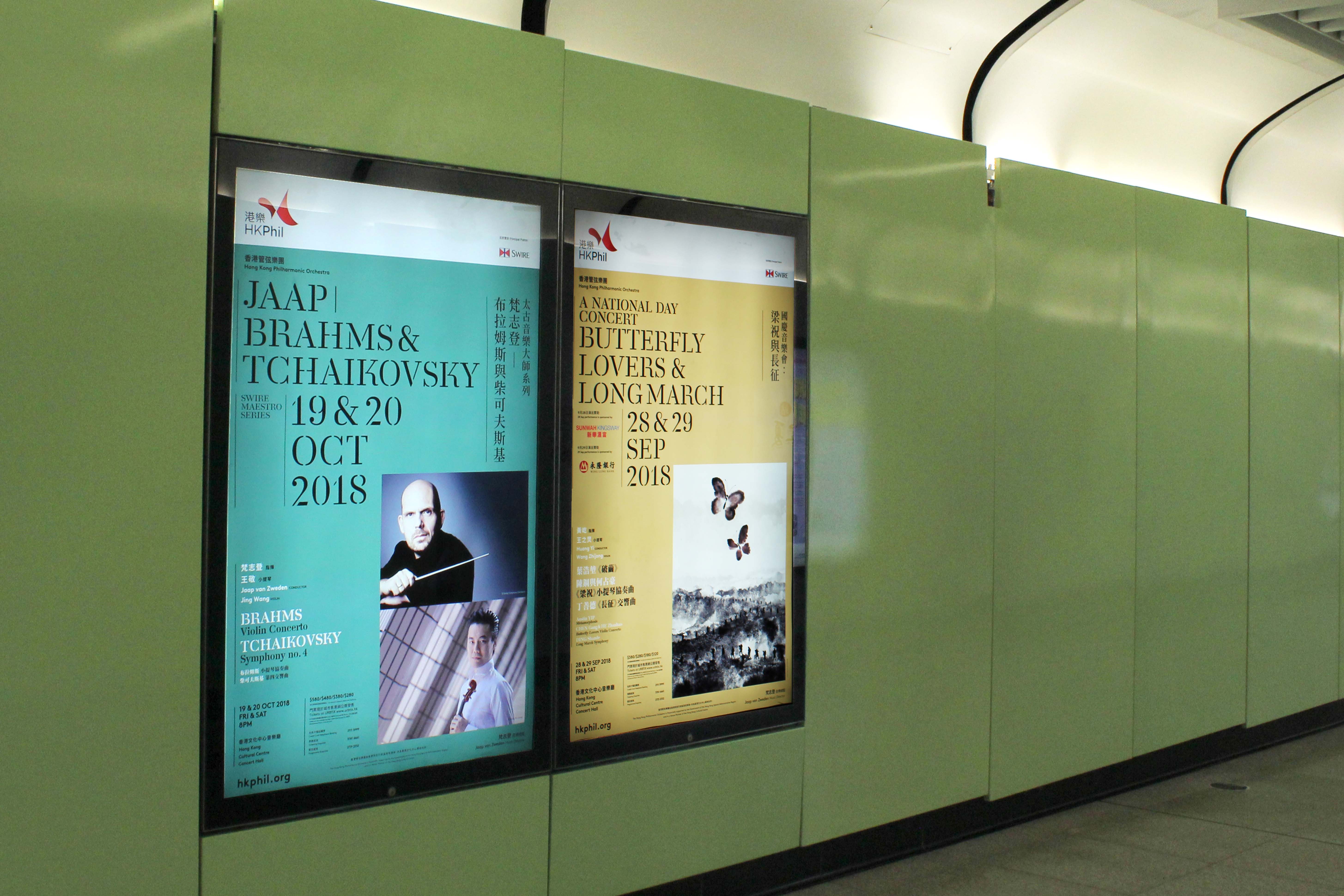 New visual identity system designed for Hong Kong Philharmonic Orchestra (HKPhil) to celebrate its 45th anniversary in HK outdoor publicity. Using Danmark (English) and Noto Serif CJK (Traditional Chinese) with their modern-classic style. The typeface Danmark created by A2-TYPE has a modern look and is easily readable. We use different background colours to highlight different series.