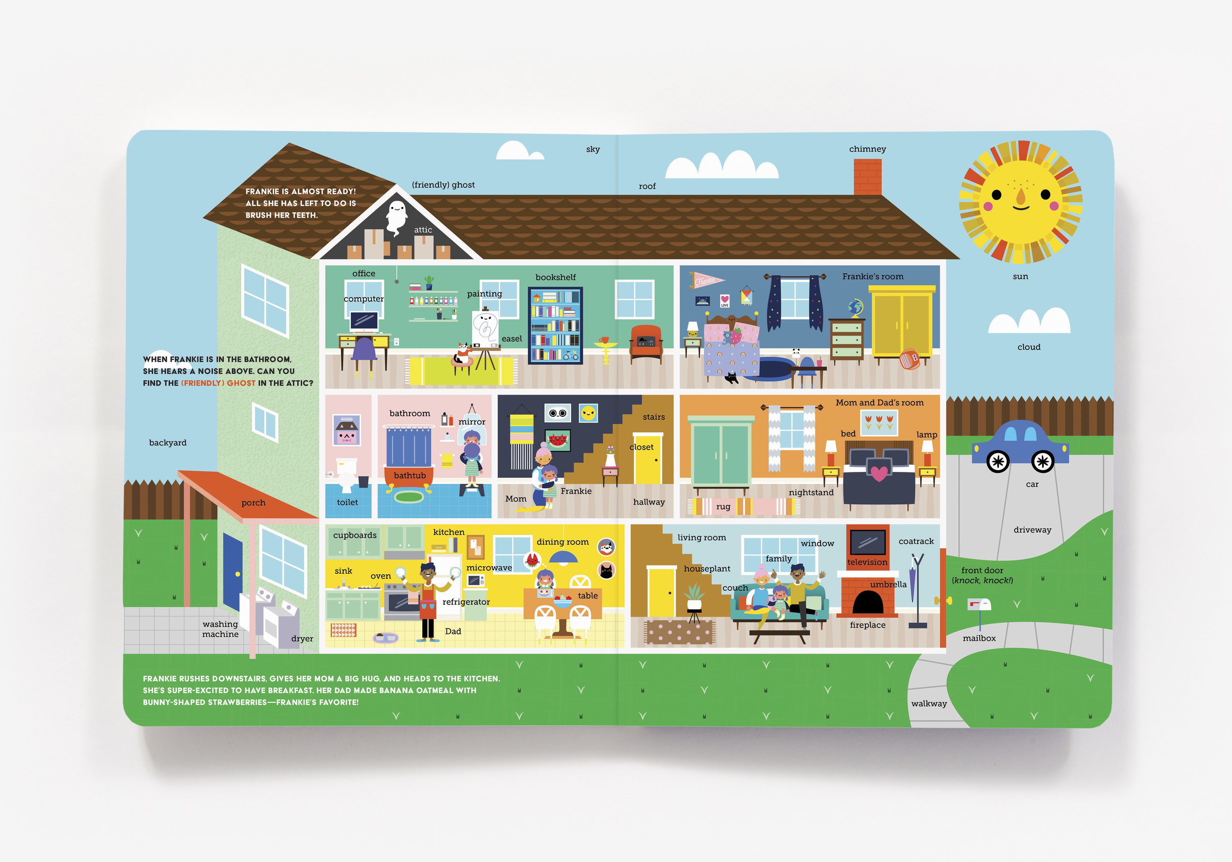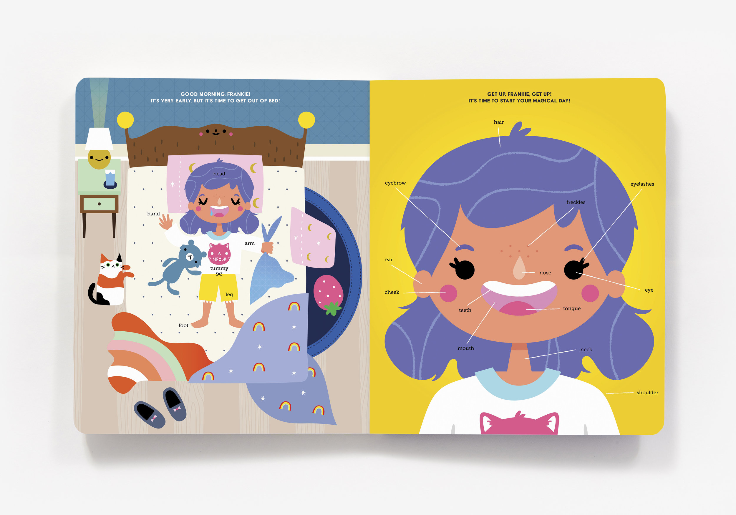 Charmingly illustrated by Michelle Romo, Frankie’s Magical Day is a first word book that introduces a mix of the unconventional and everyday terms. Featuring everything from a post office and a castle to a bunny bandit and a unicorn, this fun-filled book contains hundreds of objects and places clearly labeled to help little readers expand their growing vocabularies.