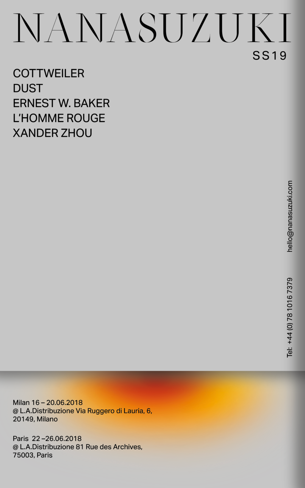 Nana Suzuki’s showroom advertisement, as placed in the Spring/Summer 2019 issue of MODEM magazine. Design by Nuno Maio, who used Blaze Type’s type family Oroban, style: Elegans.