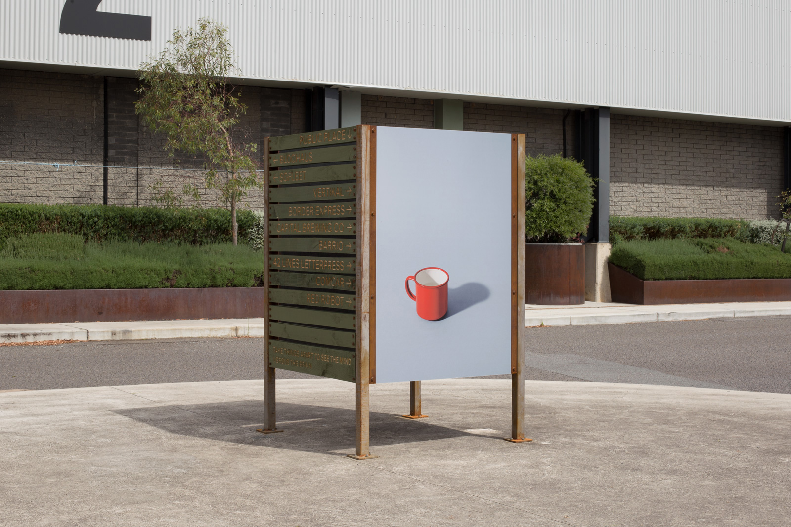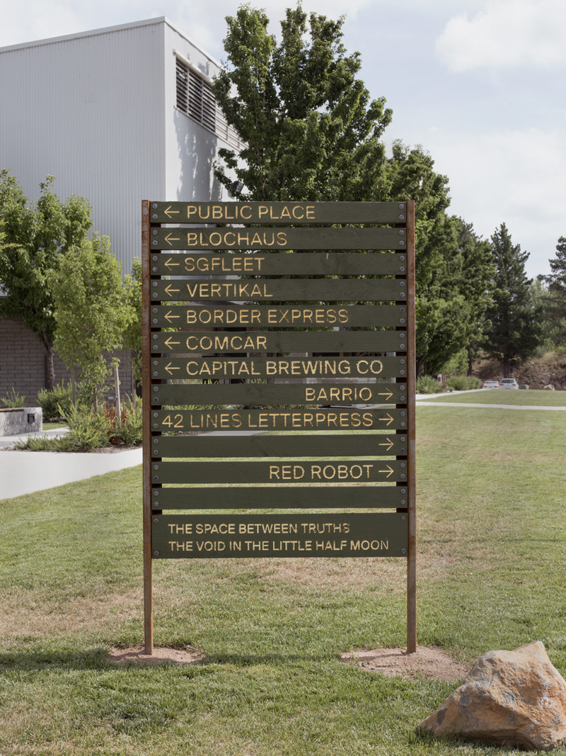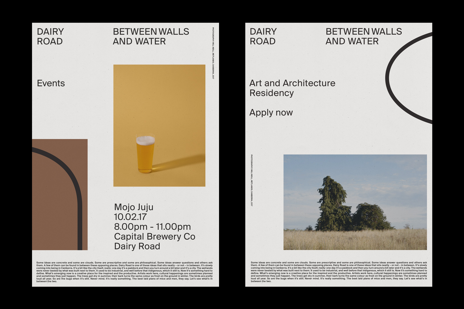 They developed a system that is intended to be built-up over time. The identity is a framework populated with placeholder content and images. The placeholders can be rotated and layered over as the site changes and develops. The placeholder spaces allow room for current and future tenants to input into the identity as they are invited to fill these spaces with their own materials. In this way, the identity is an experiment in the letting-go of authorship to adopt a participatory design approach.