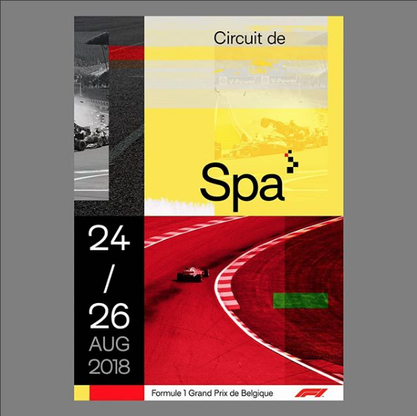 Poster for the upcoming Formula 1 Belgian Grand Prix taking place this weekend. The design combines vintage photographs and the modern typeface Surt to celebrate the iconic circuit of Spa-Francorchamps. This poster marks the beginning of a new series around the F1 events. Next up: Monza.