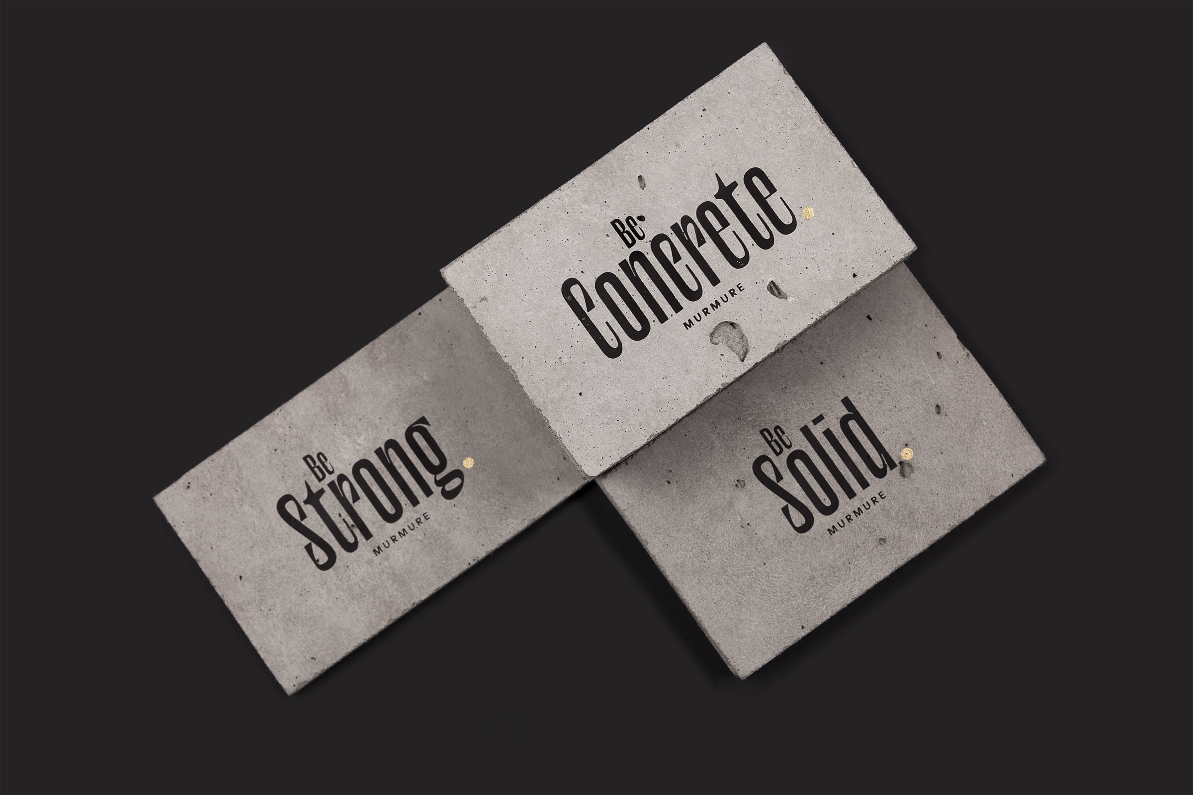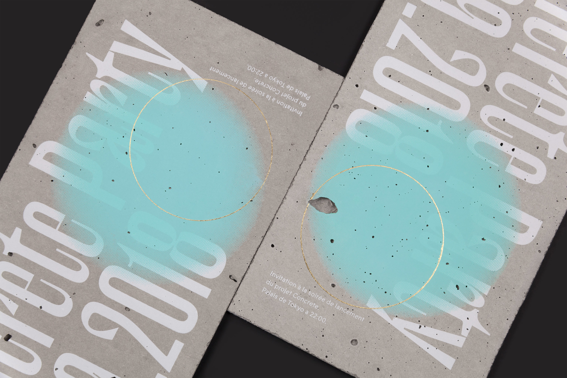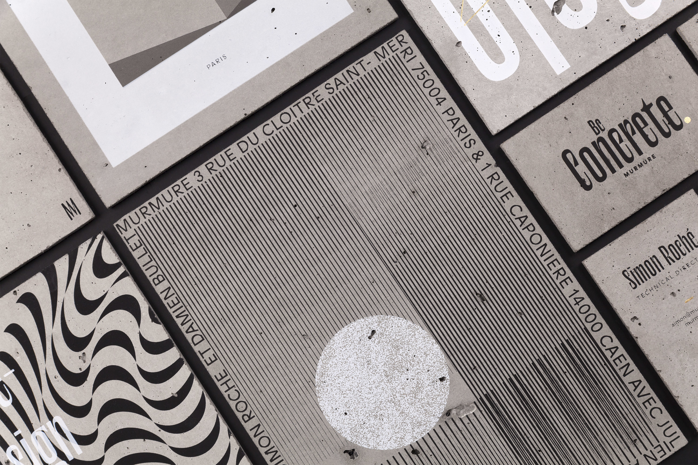 “The Concrete Project” is a side project Murmure has initiated and developed in partnership with the Première Presse workshop. It enables silk-screen and gold leaf printing to be achieved on communication material made out of premium concrete.