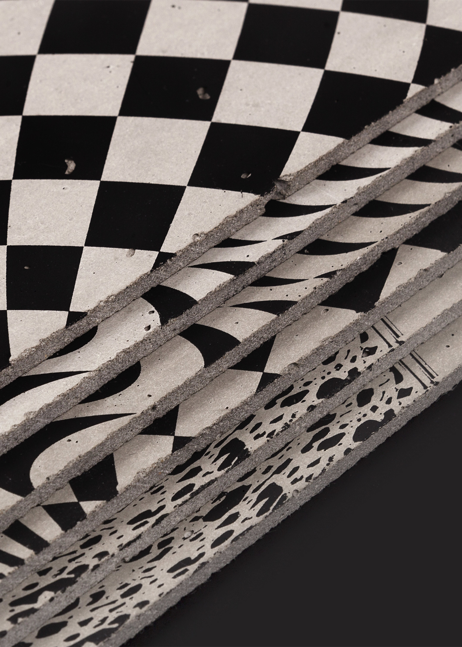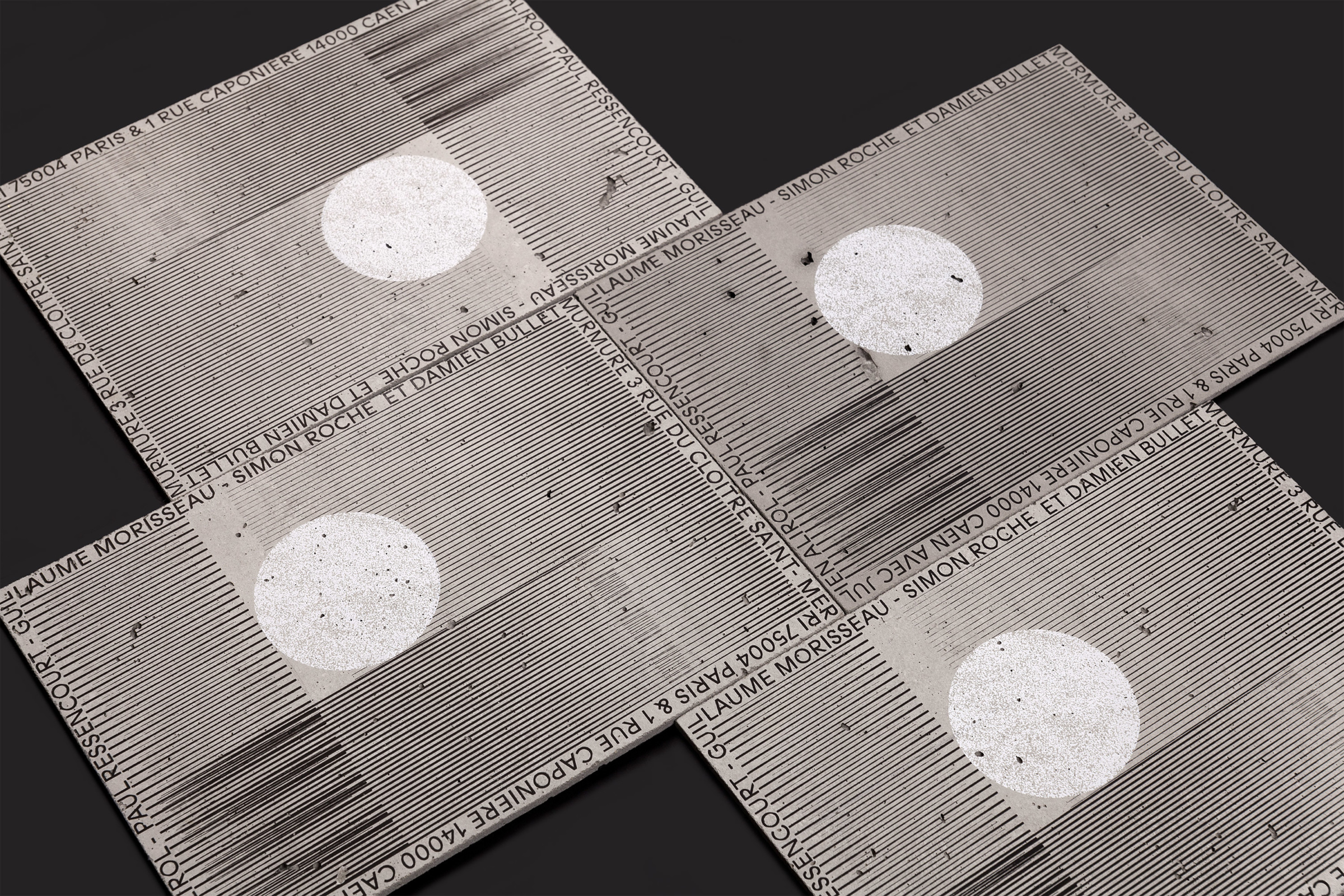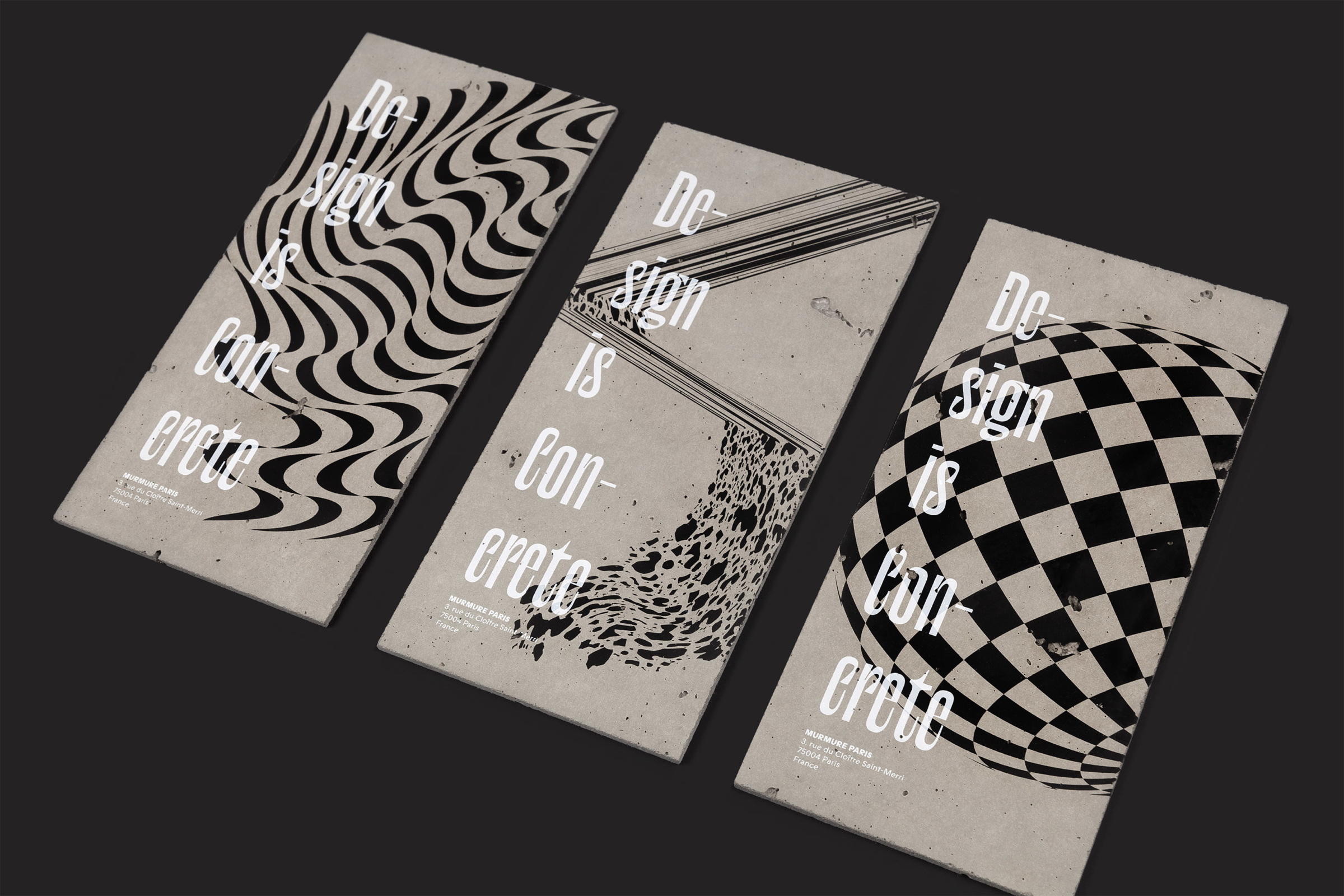 “The Concrete Project” is a side project Murmure has initiated and developed in partnership with the Première Presse workshop. It enables silk-screen and gold leaf printing to be achieved on communication material made out of premium concrete.