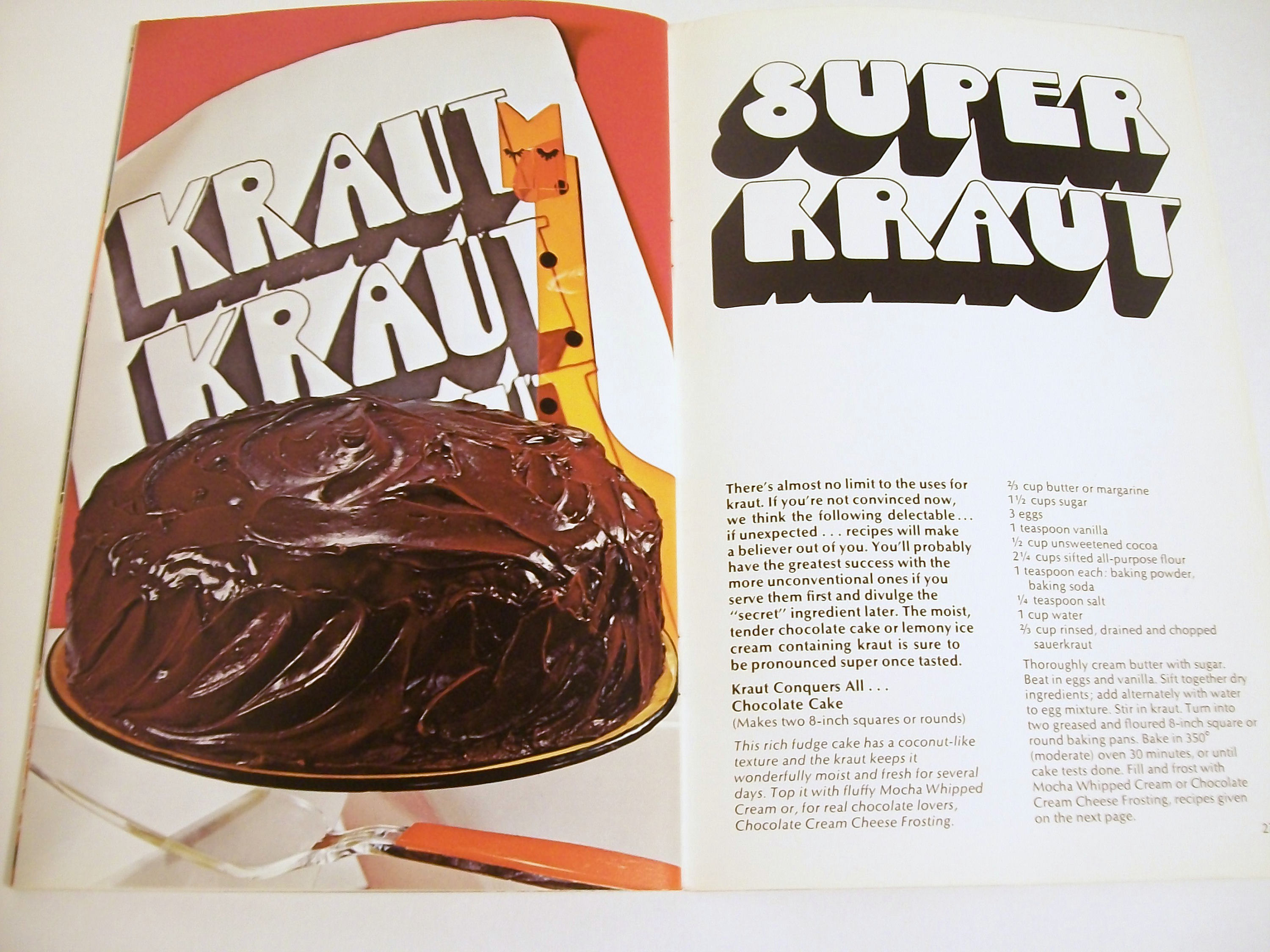 Recipes include: Reuben Sandwiches, Half Nelson Heron, Jolly German Triple Deckers, Turned On Chops ’n Kraut with baked Apple Bonus, Stout Hearted Kraut & Frankfurters, Cabbage & Kings Stew, Rah Rah Round Dogs, Red Letter Pheasant with Kraut, Roast Duck & Kraut, Ridge Runner Quail & Kraut casserole, Kraut Conquers All … Chocolate Cake, The Power of Pizza, I Scream You Scream for Lemony Kraut Ice Cream, and many more. — gatorgirl622