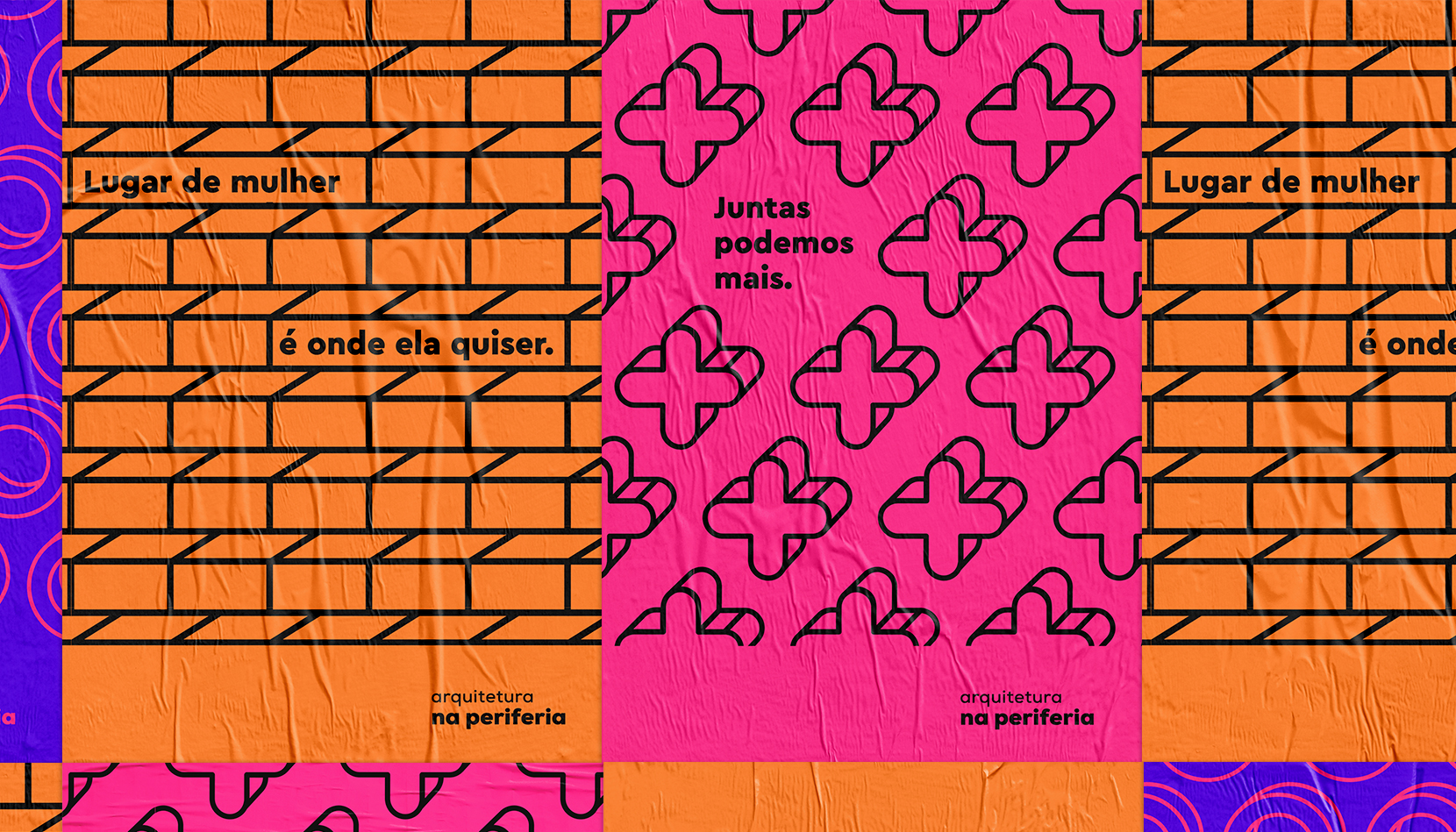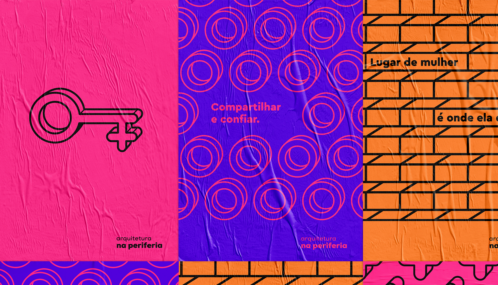 The name of this social enterprise already says a lot: Arquitetura na Periferia (“Architecture in Periphery”, in Brazilian Portuguese) is an unique initiative that provides housing improvement to low-income neighborhoods in Brazil. What its name does not say is that this is a project made by and for women. They are the ones who plan, design and get their hands dirty. They are the ones who believe in each other and in their own potential. Inspired in the feminine icon, we have developed a singular graphic shape that communicates the women’s leadership in this scenario.
