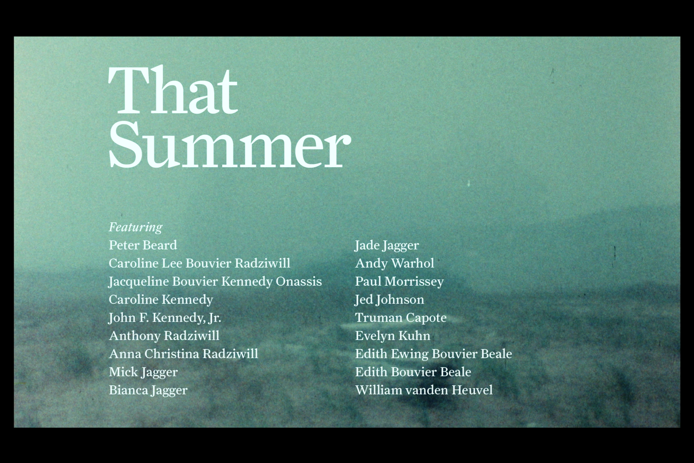 That Summer is a documentary feature film produced by Story and Louverture films. It uncovers footage lost for decades shot by Peter Beard, Andy Warhol and Jonas Mekas, and features Lee Radziwill and the Beales of Grey Gardens, Big Edie and Little Edie. Now re-edited and directed by Göran Hugo Olsson.