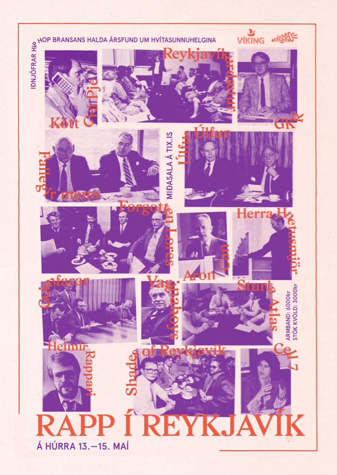Gza and Aperçu in use for a three-day rap festival in Reykjavík, Iceland. Design by Bobby Breiðholt in 2016.