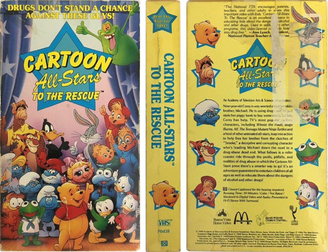 Cartoon All-Stars to the Rescue is a 1990 American animated drug-abuse prevention television special starring many of the popular cartoon characters from American weekday, Sunday morning, and Saturday morning television at the time of its release. [Wikipedia] The main typefaces are Balloon, Brush Script, and ITC Souvenir.