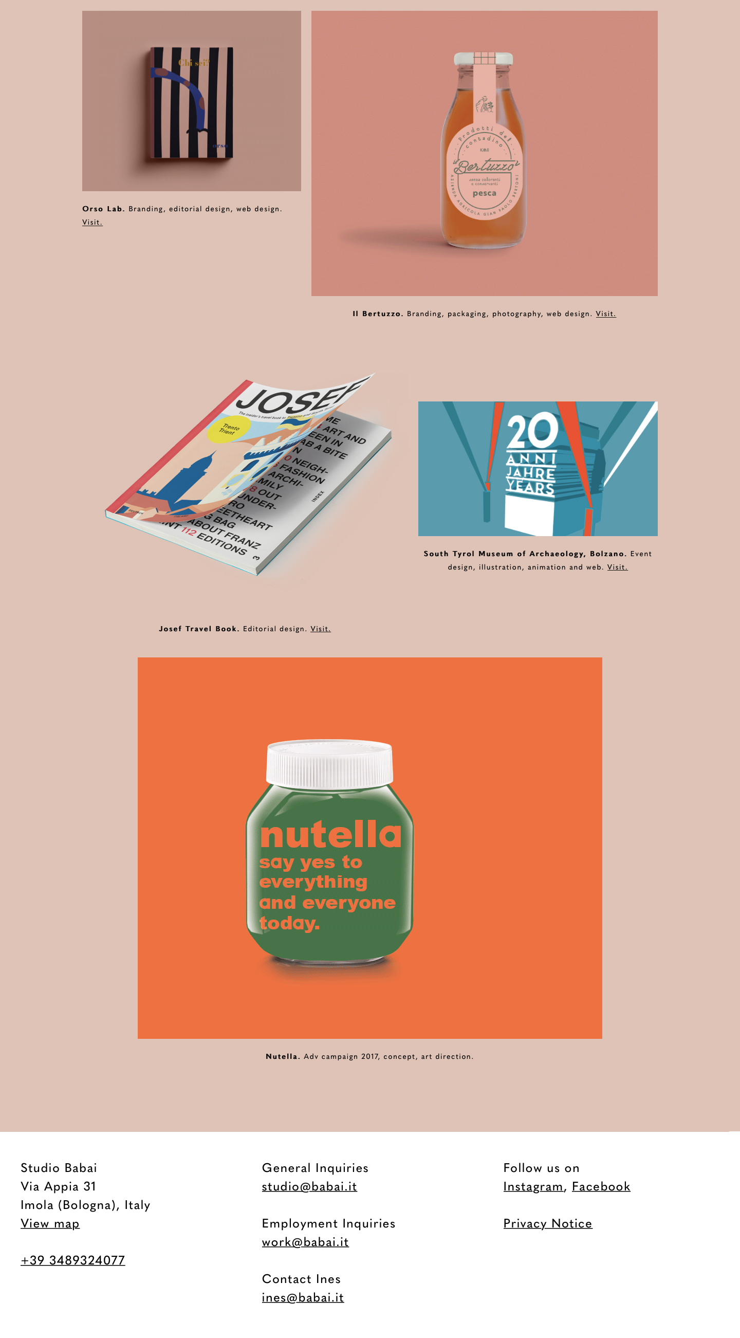 Quasimoda in use on the single page portfolio website for Studio Babai.