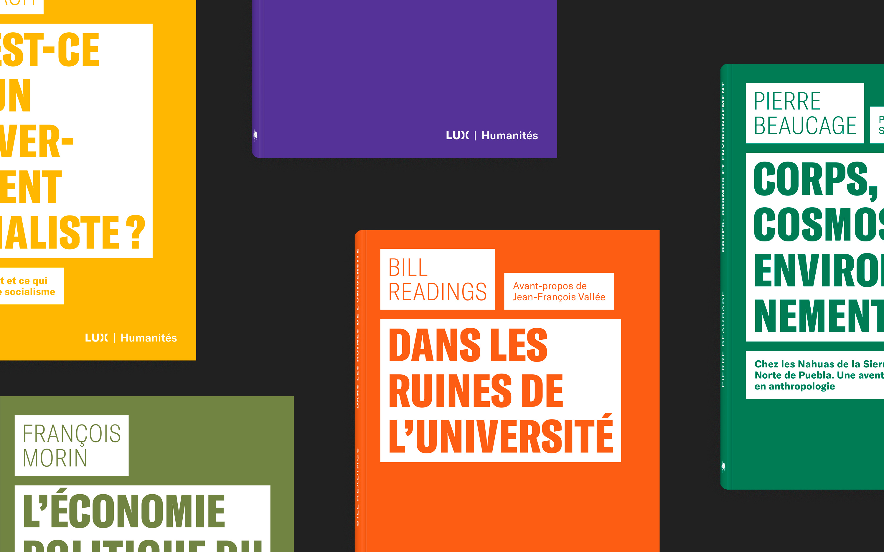 Collection Humanités, Lux Éditeur Contributed by Jolin Masson on Oct 24th, 2018. Artwork published in 2017. Photo: Jolin Masson. License: All Rights Reserved. Redesign of the Collection Humanités by Lux Éditeur, a book series with essays in social and political science. GT America replaced Adobe Garamond as the typeface family used for the covers. The interior (not pictured) is still set in Minion. Photo: Jolin Masson. License: All Rights Reserved. Photo: Jolin Masson. License: All Rights Reserved. Photo: Jolin Masson. License: All Rights Reserved. Photo: Jolin Masson. License: All Rights Reserved. Photo: Jolin Masson. License: All Rights Reserved. Typefaces More about GT AmericaGet GT America Formats Books (6540) Topics Literature (3021) Education/Academia (2185) Designers/Agencies Jolin Masson (28) Tagged withbook covers (5876)Lux Éditeur (12)book series (508)type in a box (710)one color (319)one typeface family (1683)multiple styles (114)French (language) (2547)only type (1283)back covers (2271) Artwork location Canada (814) Montreal (251) Québec (55) In SetsFYM (Anton Goddard) (19) Post a comment Name Email – will not be published Website Your response Submit Comment More GT America in use Naturhus by Marie Granmar2021Stefan FältContributed by Production Type Wilson Tennis Pro Staff v142023Wilson TennisContributed by Teguh Arief Auteur skincare2020HolidayContributed by Fanny Hamelin Sponsor More in Literature Im Zauberlande Technika by Paul Berendt1933Max WelzelContributed by Florian Hardwig Basiliski Lapsed by Kadri-Ann Sumerac. 2022Eiko OjalaContributed by Murathan Biliktü Hungarian stand, Leipzig Book Fair 20192019Anna FarkasAnagraphicMiklós BatiszContributed by Anna Farkas Staff Pick Petroleum Man2005Contributed by Font Bureau More in Books Sorry Please Thank You by Charles Yu2013Cardon WebbContributed by Stephen Coles John & Mimi by John and Mimi Lobell, St. Martin’s Press1972unknownContributed by Florian Hardwig Skulls: Portraits of the Dead and the Stories They Tell2021Laurence KingContributed by Swiss Typefaces The Road to Los Angeles, Black Sparrow Press edition1985Barbara MartinContributed by Stephen Coles Staff Pick More Fonts In Use A Wizard of Earthsea by Ursula K. Le Guin, Parnassus Press (1968)1968Ruth RobbinsContributed by Florian Hardwig Staff Pick Tomorrowland signs at Disneyland Park and Magic KingdomWalt Disney ImagineeringTony BaxterContributed by Stephen Coles Staff Pick Massimo Dutti – Paper magazine, Vol. IV, 20202020Ana MiratsContributed by Nikolas Wrobel Staff Pick Yom HaZikaron (Memorial Day 1978)1978Zvi NarkissContributed by Alon Tayar Staff Pick