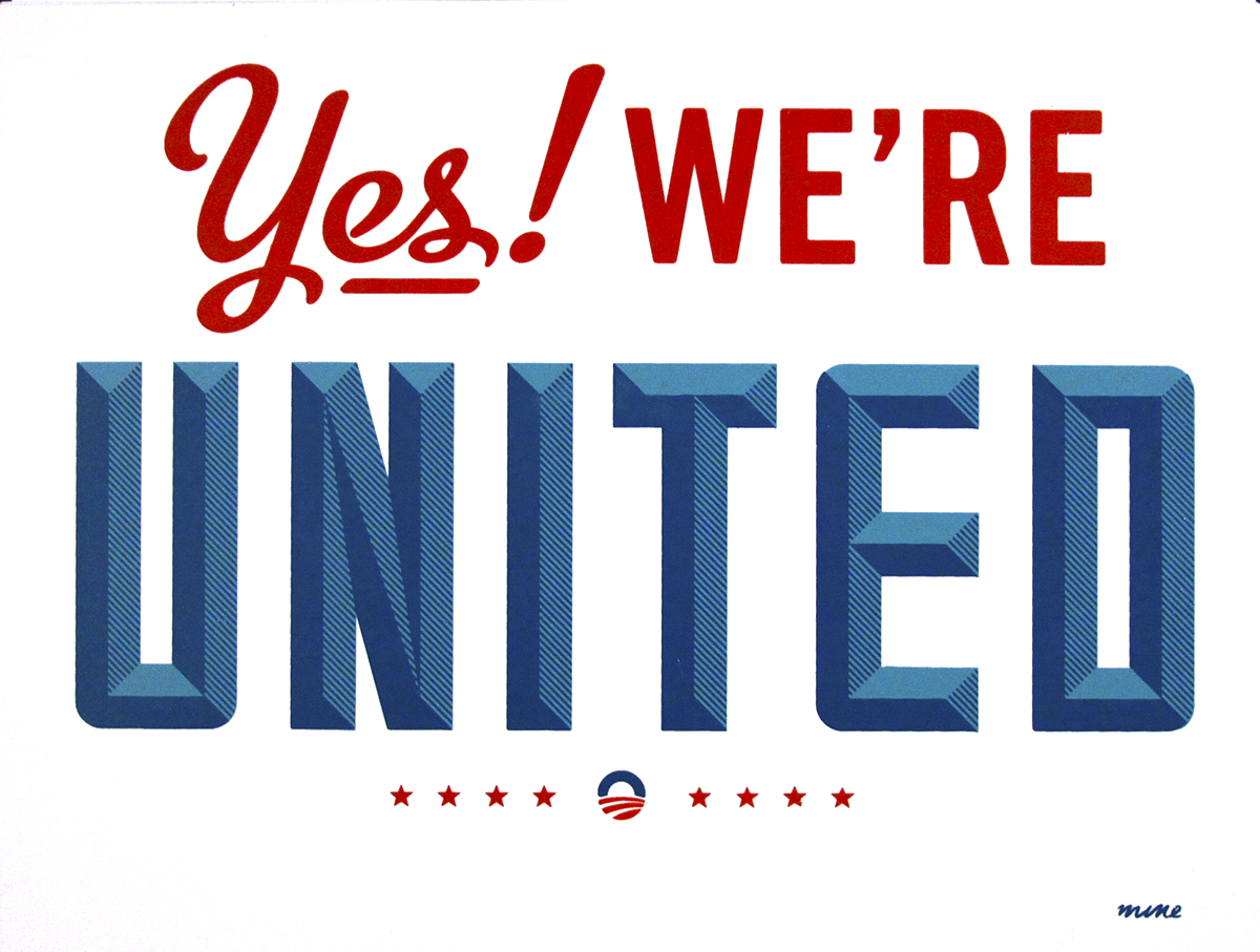 Yes! We’re United Contributed by Christopher Simmons on Nov 2nd, 2012. Artwork published in 2012. Source: www.facebook.com © 2012 Christopher Simmons / MINE™. License: CC BY-ND. 9″×12″ 3-Color silk screen print on styrene signboard, individually signed and numbered on reverse. Limited to an edition of 275 Source: www.facebook.com © 2012 Christopher Simmons / MINE™. License: CC BY-ND. Source: www.facebook.com © 2012 Christopher Simmons / MINE™. License: CC BY-ND. Typefaces More about MetroscriptGet MetroscriptMore about ValucoGet ValucoMore about Trade GothicGet Trade Gothic Formats Art/Illustration (502) Topics Politics (875) Designers/Agencies Christopher Simmons (1) MINE™ (1) Tagged withBarack Obama (12)signs (687)US Presidents (36)2012 presidential campaign (5)hip traditional (76)red white and blue (177)faceted (16) Artwork location United States (10190) In SetsFavourites (GiGi Galore) (29)Script (Jesús Morentin) (37)Trade Gothic (Ale Caso) (10)Cool (Jacqueline San Fillipo) (4) Post a comment Name Email – will not be published Website Your response Submit Comment More in Politics Seek Truth, ArtCenter College of Design project2023Micah HoangContributed by Micah Hoang Ultravanguardia 1958–19772022Veronica PaoliContributed by Veronica Paoli Transforming Solidarities website2020Bureau EstOndine PannetContributed by MA-MA Type Sponsor More in Art/Illustration ZHĒKLĀ paintingc. 2020Berger & FöhrContributed by Nicholas Cai Pelican Club – “Call Waiting” single cover2024Eric CarlsonContributed by Eric Carlson Taza Flores2019Studio JulyAWPContributed by AWP American Express “Realise the potential” ad campaign2009Ogilvy & MatherContributed by Fonts In Use Staff More Fonts In Use View From A Blue Moon website & trailer2015Blake Vincent KuenyWedge & LeverContributed by Stephen Coles Staff Pick Texas Monthly, “The 50 Best BBQ Joints 2021” web page2021Emily KimbroVictoria MillnerDarice ChaviraContributed by Jamie Otelsberg (OH no Type Co.) Staff Pick Blanket Statement, Yale School of Art2022Osvald LandmarkM.C. MadrigalContributed by WELTKERN® Typefaces Staff Pick Elton John – Tumbleweed Connection album art1970David LarkhamContributed by Riccardo Sartori Staff Pick Forgotten Boardwalk Brewing Co.2016Perky BrosContributed by Richard Baird Staff Pick Certain Realities exhibition poster2019Mark Gowing StudioContributed by Mark Gowing Staff Pick Bill Godbout Electronics advert in BYTE magazine1975unknownContributed by D Jones Staff Pick H.I.S Menswear Advertising (1960s–70s)1967Contributed by Stephen Coles Staff Pick