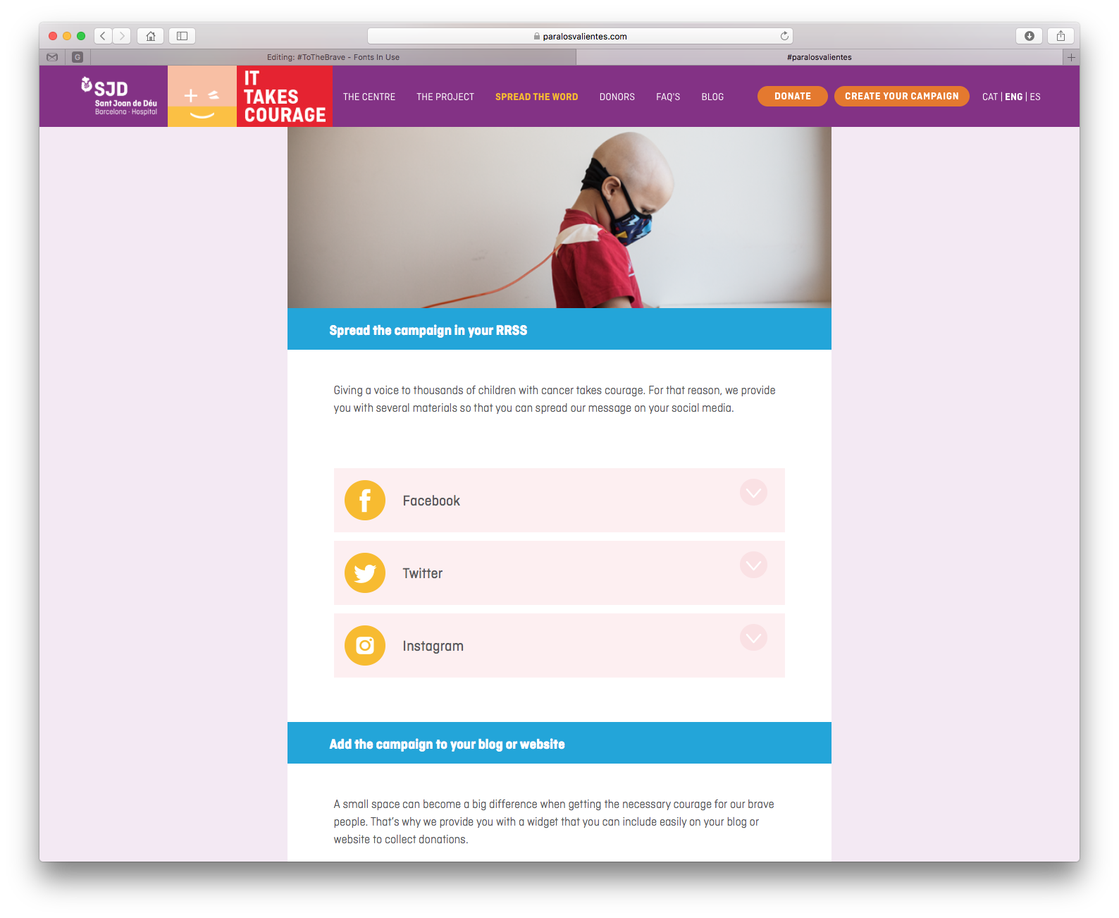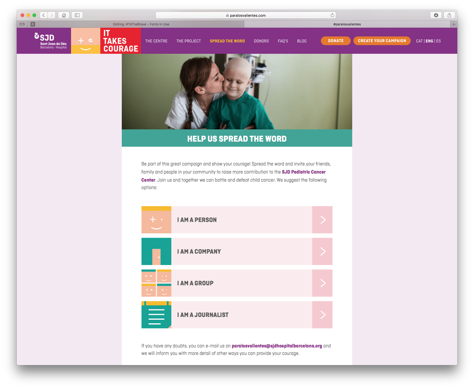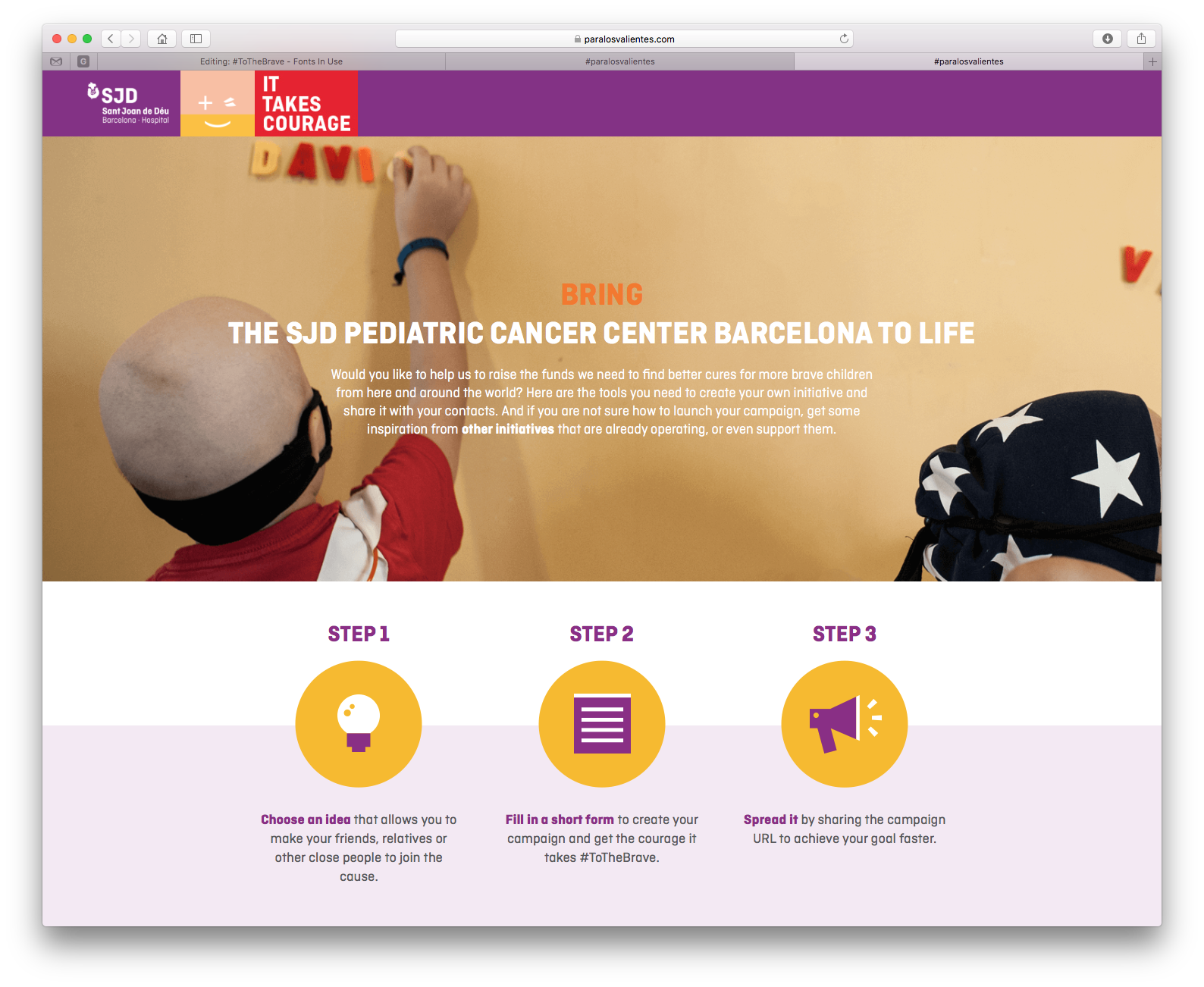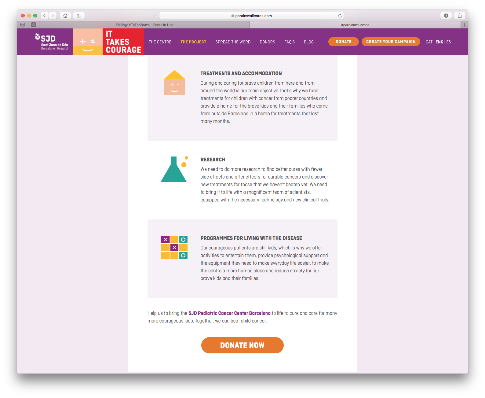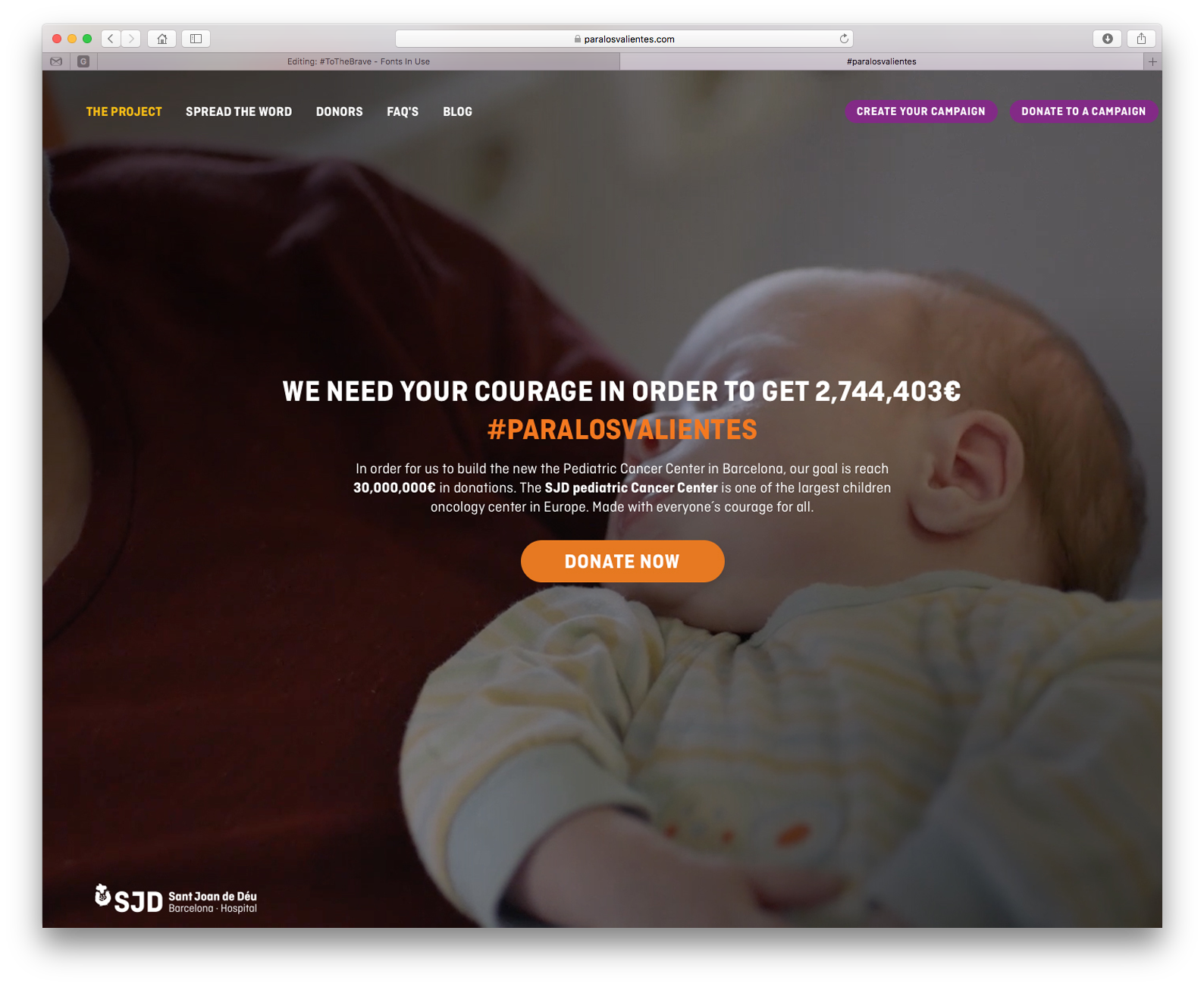 Ciutadella in use for the fundraising website and campaign of the Hospital Sant Joan de Déu Barcelona (SJD), a teaching hospital, specialized in the fields of pediatrics, gynaecology and obstetrics. The SJD aims to build a new pediatric cancer center in Barcelona, dedicated to care and cure for children with cancer. This center will be one of the largest medical centers in Europe of its kind.