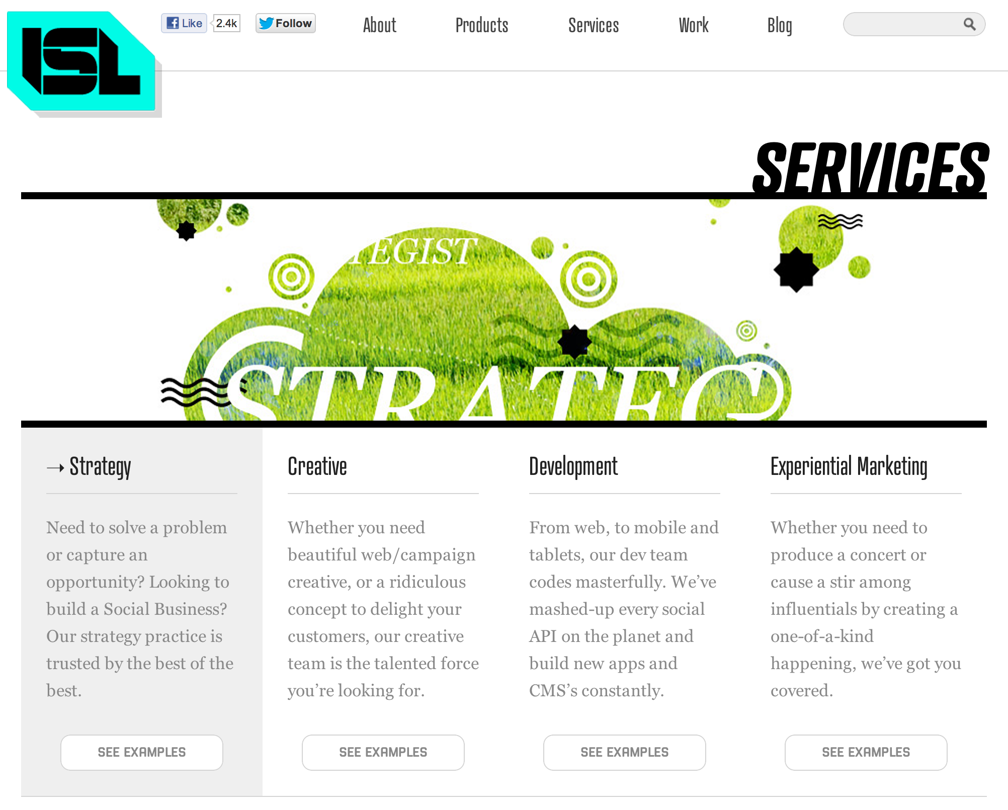 iStrategyLabs website Contributed by Stephen Coles on Nov 4th, 2012. Artwork published in 2012. Source: istrategylabs.com License: All Rights Reserved. Source: istrategylabs.com License: All Rights Reserved. Source: istrategylabs.com License: All Rights Reserved. Source: istrategylabs.com License: All Rights Reserved. Source: istrategylabs.com License: All Rights Reserved. Source: istrategylabs.com License: All Rights Reserved. Typefaces More about AtramentGet AtramentMore about MagionGet MagionMore about GeorgiaGet Georgia Formats Web (5714) Branding/Identity (8605) Topics Services (1578) Graphic Design (3041) Designers/Agencies iStrategyLabs (1) Tagged withportfolios (779)design studios/agencies (497)webfonts (449) Post a comment Name Email – will not be published Website Your response Submit Comment More Atrament in use XOXO Festival2012Factory NorthPaulo ZoomContributed by Stephen Coles Popular Mechanics Nov, 20122012Popular MechanicsMichael LawtonContributed by Lawton Popular Mechanics, May 2013 Preview2013Michael LawtonContributed by Lawton Sponsor More in Services Irish Women In Sport stamps2022UnthinkNoelle CooperÁine MgGeeContributed by Max Phillips Schlosserei & Kunstschmiede Erwin KlenkhartPhoto(s) by Thomas Lieser on Flickr. Herzblut & Bock website and videosc. 2024Herzblut & BockContributed by Schrifteria Foundry Wig-01 website2005Wig-01Contributed by Stephen Coles More in Web Hello Happy2012Chad MazzolaContributed by Jeff Porter Cabinet brand identityc. 2020CabinetOtherwayContributed by F37® Technocar logo and websitec. 2018unknownContributed by Sergej Lebedev James Street website2025GroundcrewContributed by Kevin Lam More Fonts In Use Que me toquen una cumbia!! (Y algo más) by Bianca Forischi2025Bianca ForischiContributed by Mario Julian Gutierrez Staff Pick Black Manhattan book cover1968Chermayeff & GeismarContributed by Indra Kupferschmid Staff Pick Heath Ceramics Website2012MethodAOE MediaContributed by Stephen Coles Staff Pick Womanhood2016Anaïs BourdetCamille LeonardContributed by Anaïs Bourdet Staff Pick
