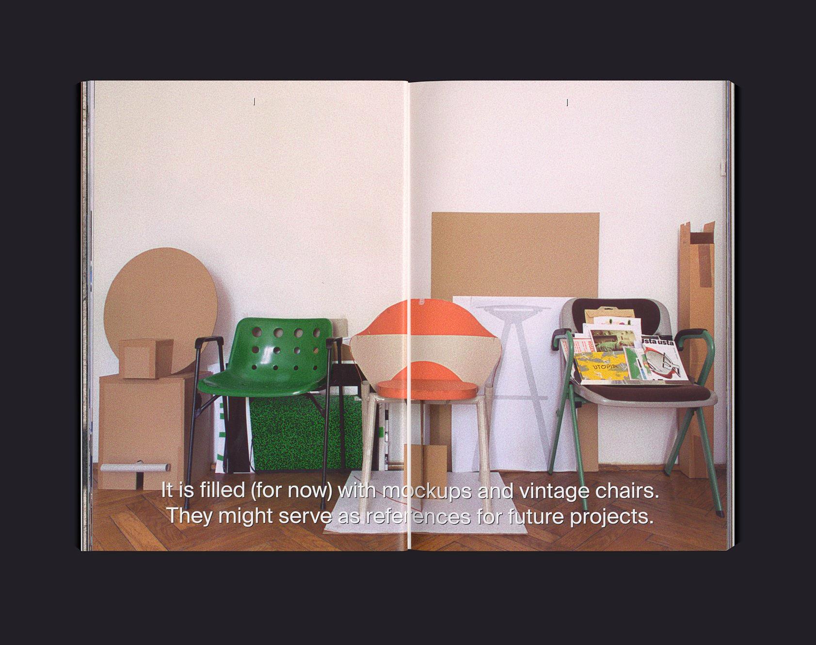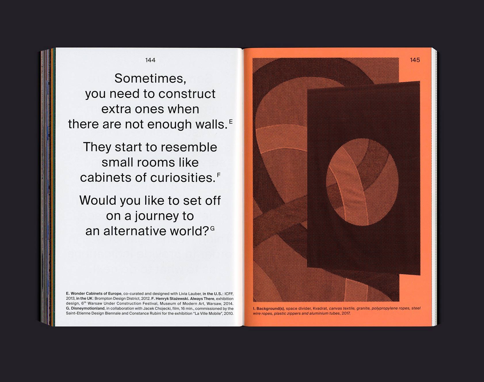 Space Time gives insight into Jeglinska’s practice presented in the form of a three-chapter film. Subtitles on the pages guide the viewer/reader and slowly introduces the audience to Jeglinska’s world. The publication starts within the four walls of the office, showing the physical space and then bounces to works in the field of product and furniture design, exhibition. It also explores her curatorial projects completed since setting up her own office 6 years ago. The film/publication shows works created for clients such as Ligne Roset, Kvadrat, 1882 ltd, Autor Rooms, London Design Biennale and the Museum of Modern Art in Warsaw.