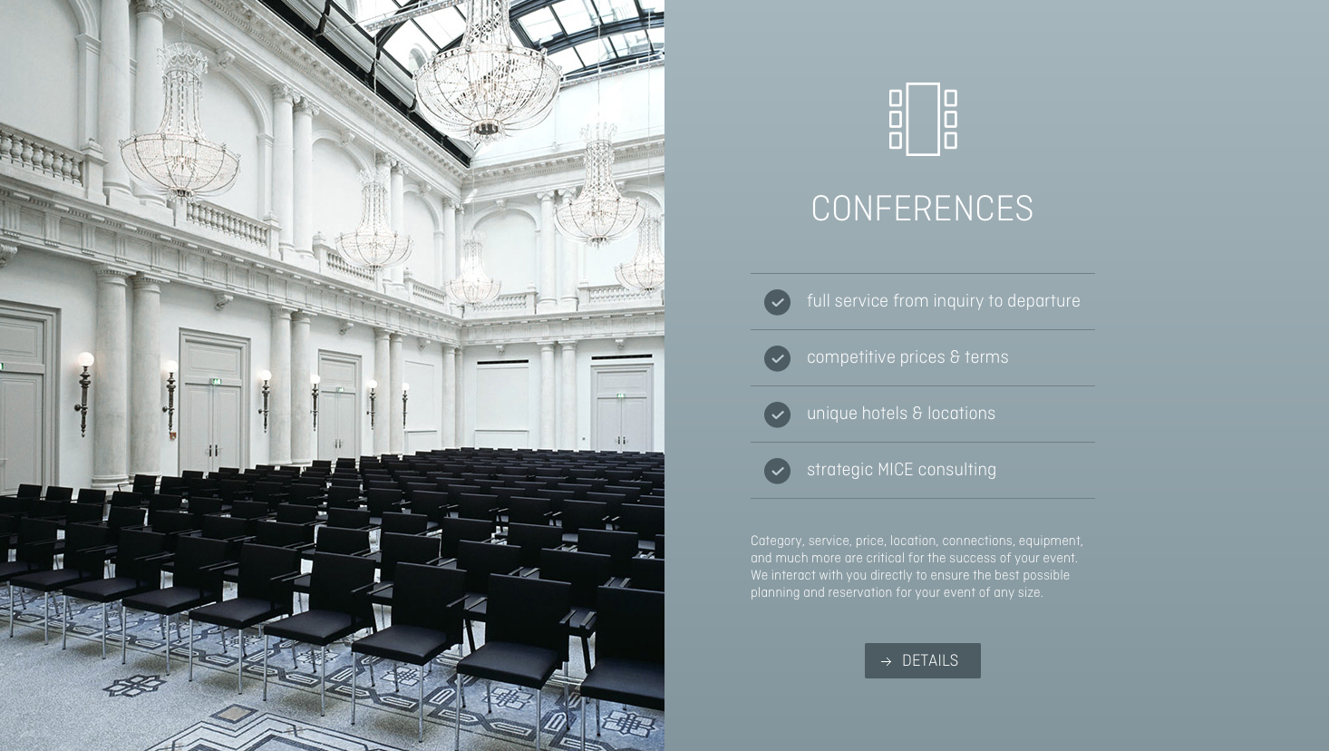 HGI Hotel Reservation Worldwide has specialized in world-wide hotel reservations and event planning since 1995. They support national and international corporate clients, organizations, associations, and agencies with all types of events. Their service team combines customer-driven and personalized service with web-based, DIY conference reservation technology. HGI provides free services to our customers ranging from inquiry to departure.