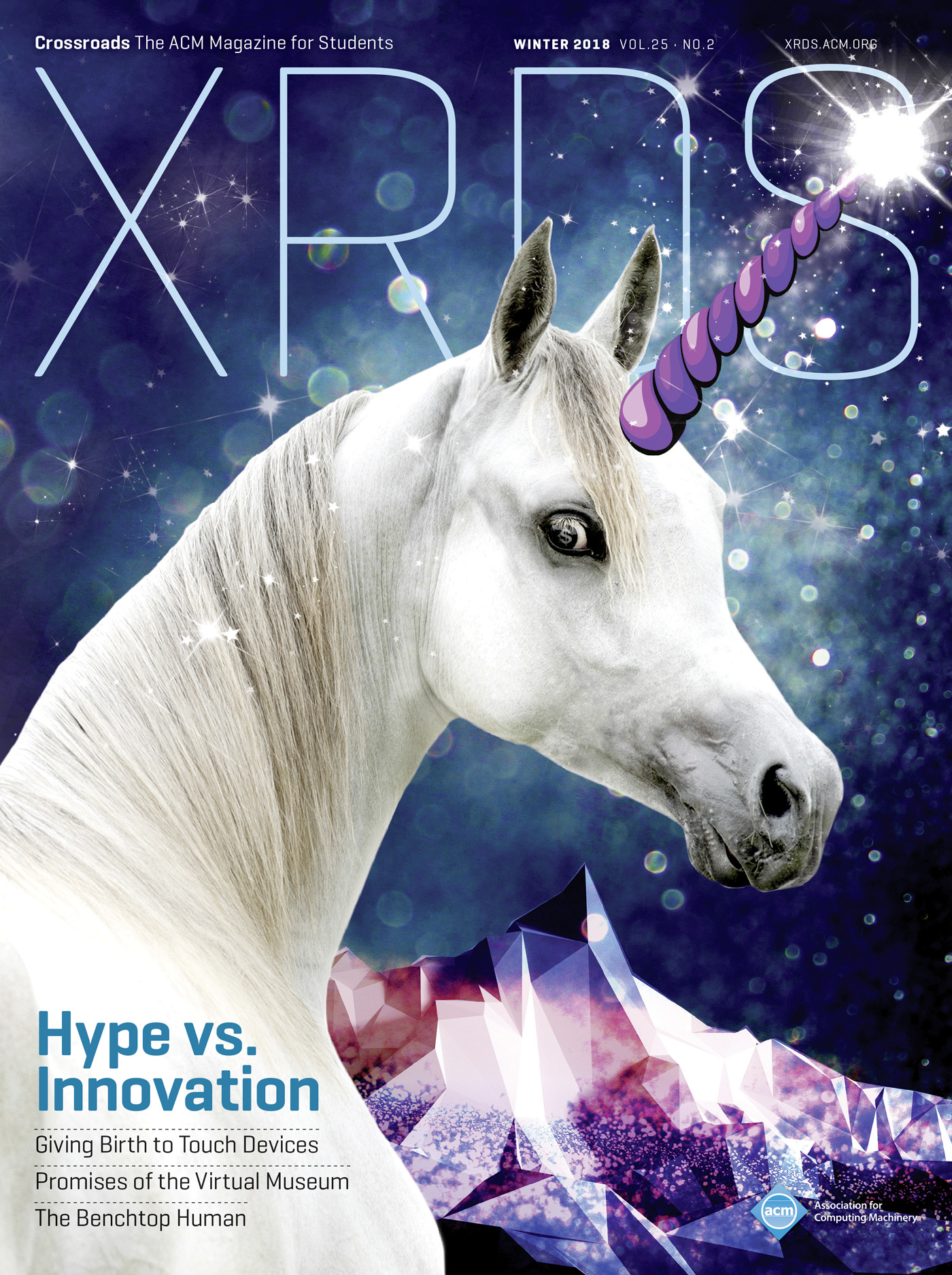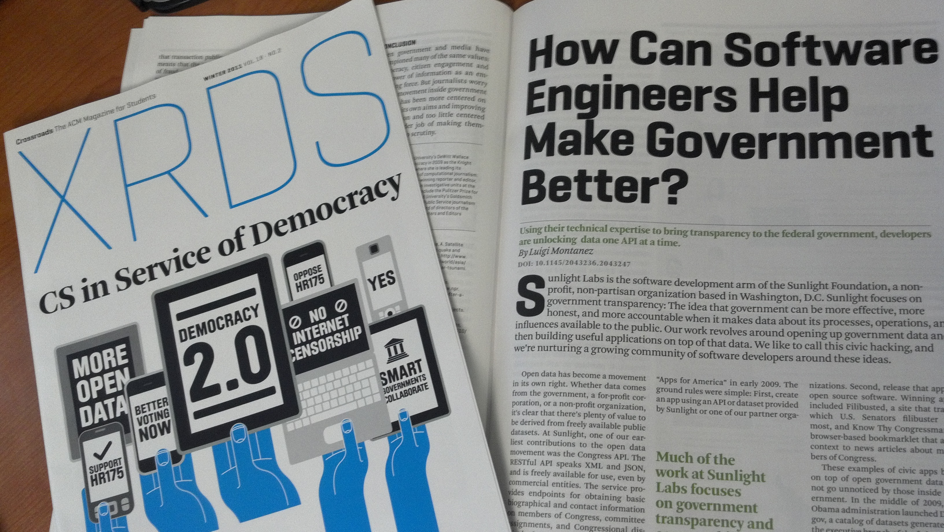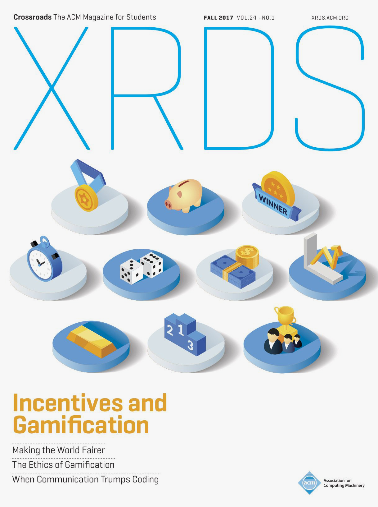 XRDS, formerly Crossroads, is the flagship academic magazine for student members of the Association for Computing Machinery, or ACM. Issues focus on computer science topics and are published quarterly in both print and electronic forms. The magazine is distributed to tens of thousands of students worldwide. The magazine was relaunched in Summer 2010. Since Volume 16, No. 4, XRDS uses the design developed by Luke Hayman and Rami Moghadam of Pentagram, featuring Eduardo Manso’s Geogrotesque alongside Fred Smeijers’ Arnhem.