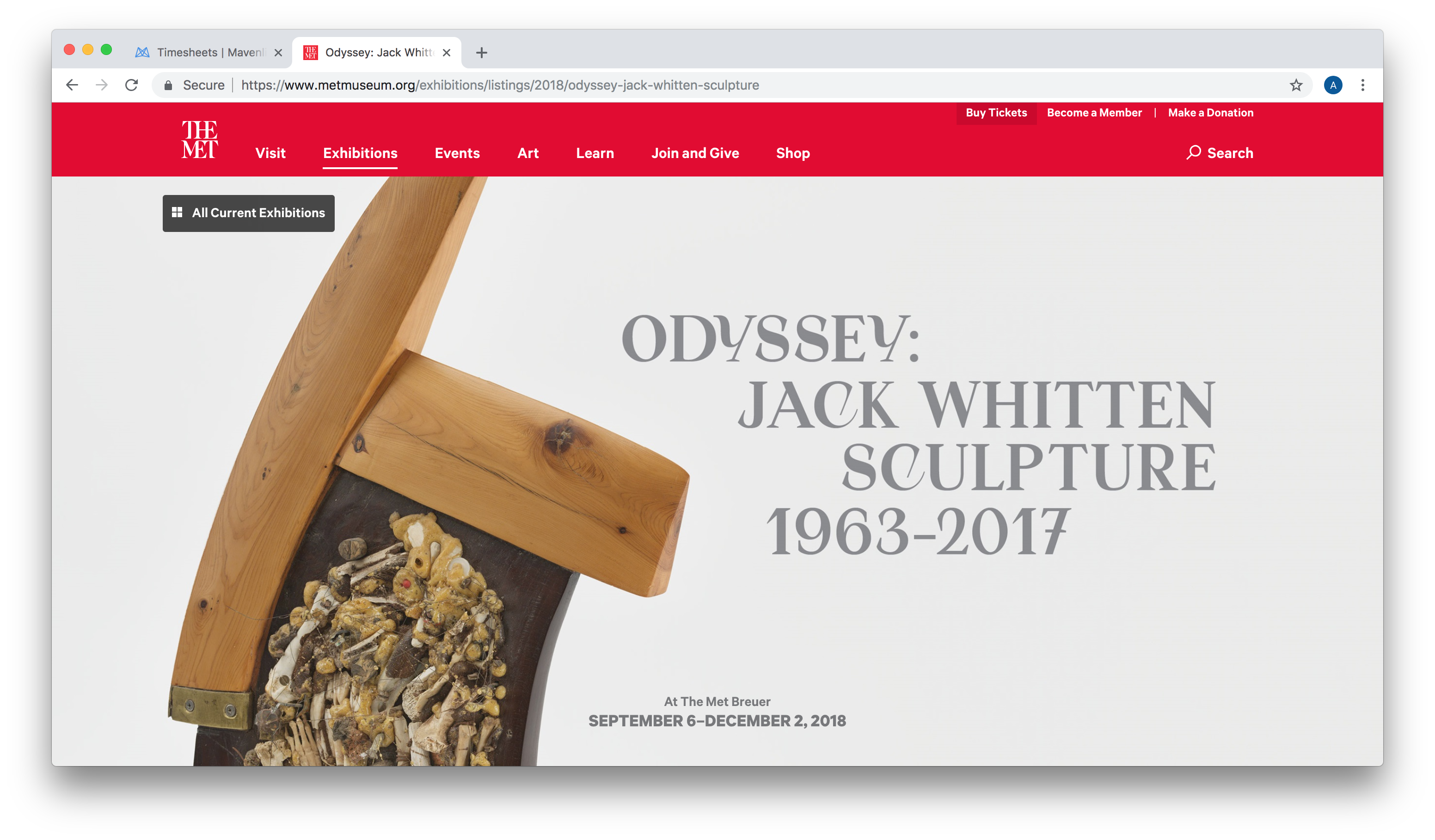 This exhibition presents the extraordinary and previously unknown sculptures of acclaimed American artist Jack Whitten (1939–2018). Whitten’s sculptures, which he first created in New York and later at his summer home on Crete, consist of carved wood, often in combination with found materials sourced from his local environment, including bone, marble, paper, glass, nails, and fishing line. Inspired by art-historical sources rooted in Africa, the ancient Mediterranean, and the Southern United States, Whitten’s sculptures not only address the themes of place, memory, family, and migration, they also give expression to a transnational, cosmopolitan perspective. — Metropolitan Museum
