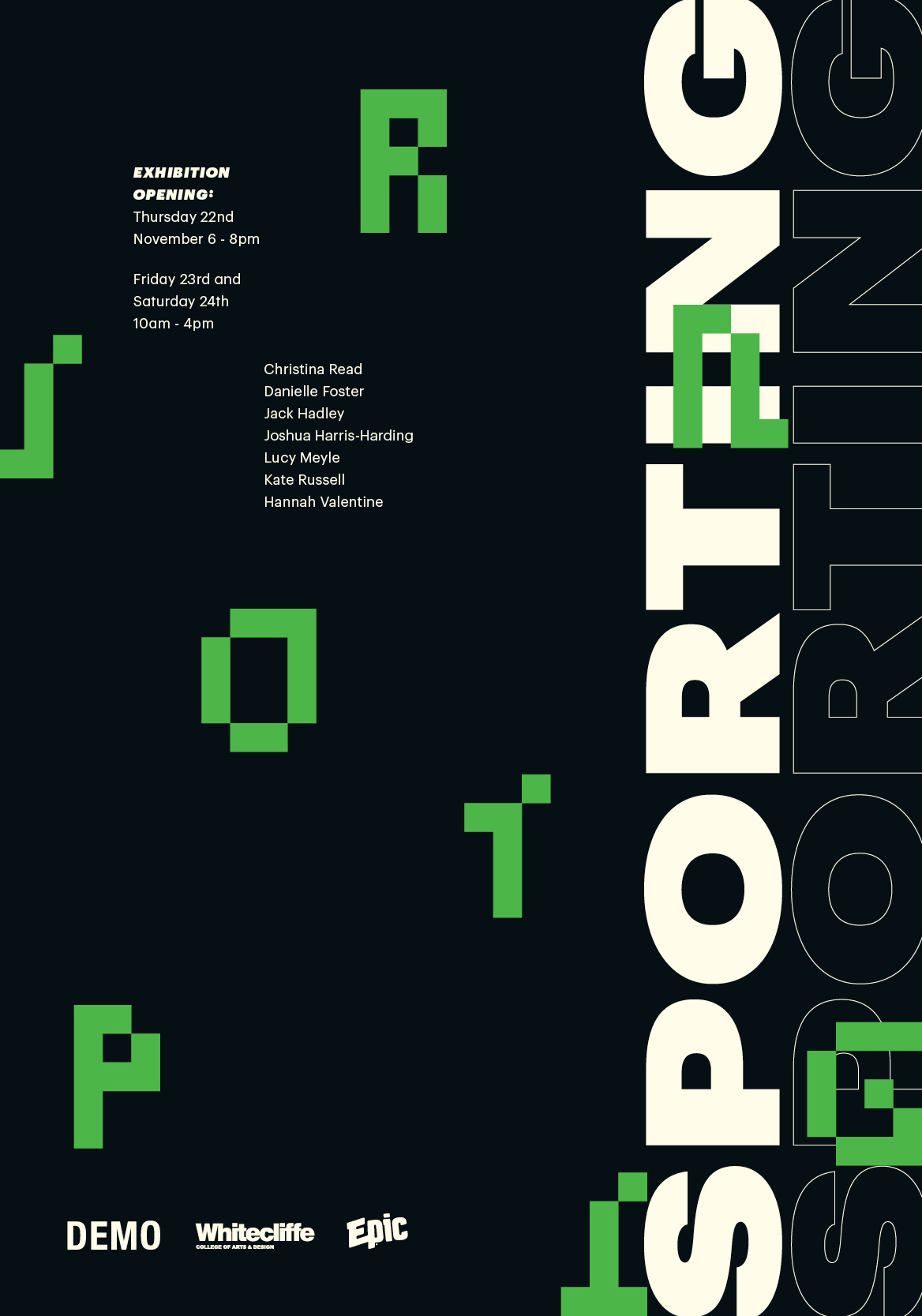 Sporting, DEMO Contributed by Jordan Foster on Feb 8th, 2019. Artwork published in 2018. License: All Rights Reserved. Poster for an exhibition at DEMO gallery in Auckland run by Whitecliffe post-graduate students. Poster uses Graphik (with the alternate monocular a) and a custom typeface called Homerun designed by Tutū Studios. Printed at A2 on 250gsm matte stock. Typefaces More about GraphikGet GraphikMore about Graphik WideGet Graphik Wide Formats Posters/Flyers (5768) Topics Art (4692) Designers/Agencies Jordan Foster (5) Tagged withexhibition posters (748)DEMO Space Auckland (1)green (778)rotated type (2224)outlined type (1260)multiple widths (564)pixels (91)alternate glyphs (1443) Artwork location New Zealand (185) Auckland (51) In SetsThesis (Ryo Wazza) (87)Poster (Ryo Wazza) (33)Sans serif (Graphic Feed) (14)Wide Style (Florian Hardwig) (145) Post a comment Name Email – will not be published Website Your response Submit Comment More Graphik in use Jameel Arts Centre Career Days 20232023unknownContributed by BVH Type Gilgamesh by Sophus Helle2022Jenny VolvovskiContributed by Gareth Hague Staff Pick Emojiary2014All TomorrowsContributed by Shiva Nallaperumal Sponsor More in Art Saint Louis Art Museum signsc. 2013Kiku Obata & CompanyContributed by Kiku Obata & Company Mentoring Creativo2022FellasContributed by Jonas Pelzer Sonhos ao Sol: Miragens da Arte na América Latina2024Felipe ChodinCamila RegueiraContributed by NaN Staff Pick Feast Magazine No. 1: Food For Thought2018Sofia FelgueirasContributed by Sofia Felgueiras More in Posters/Flyers Sea of Stories2016Farah FayyadStudio SafarContributed by 29LT Type Design Company Barcelona Innova Week 2023 campaign design2023ESIETEContributed by ESIETE Habla de Mí en Presente – “Conciertos de otoño” promotion2022Ignasi Àvila PadróContributed by Ignasi Àvila Padró HUMAN Summer Season 2022c. 2022Filippo BaldoContributed by Filippo Baldo More Fonts In Use In Your Hands2019Sam BaldwinContributed by Sam Baldwin Staff Pick LSC Caslon typeface adc. 1969Herb LubalinLubalin Smith CarnaseContributed by Stephen Coles Staff Pick Casa do Conto Hotel2011R2 DesignContributed by Tânia Raposo Staff Pick Meister Eder und sein Pumuckl (1982) titles1982Bayerischer RundfunkContributed by Florian Hardwig Staff Pick