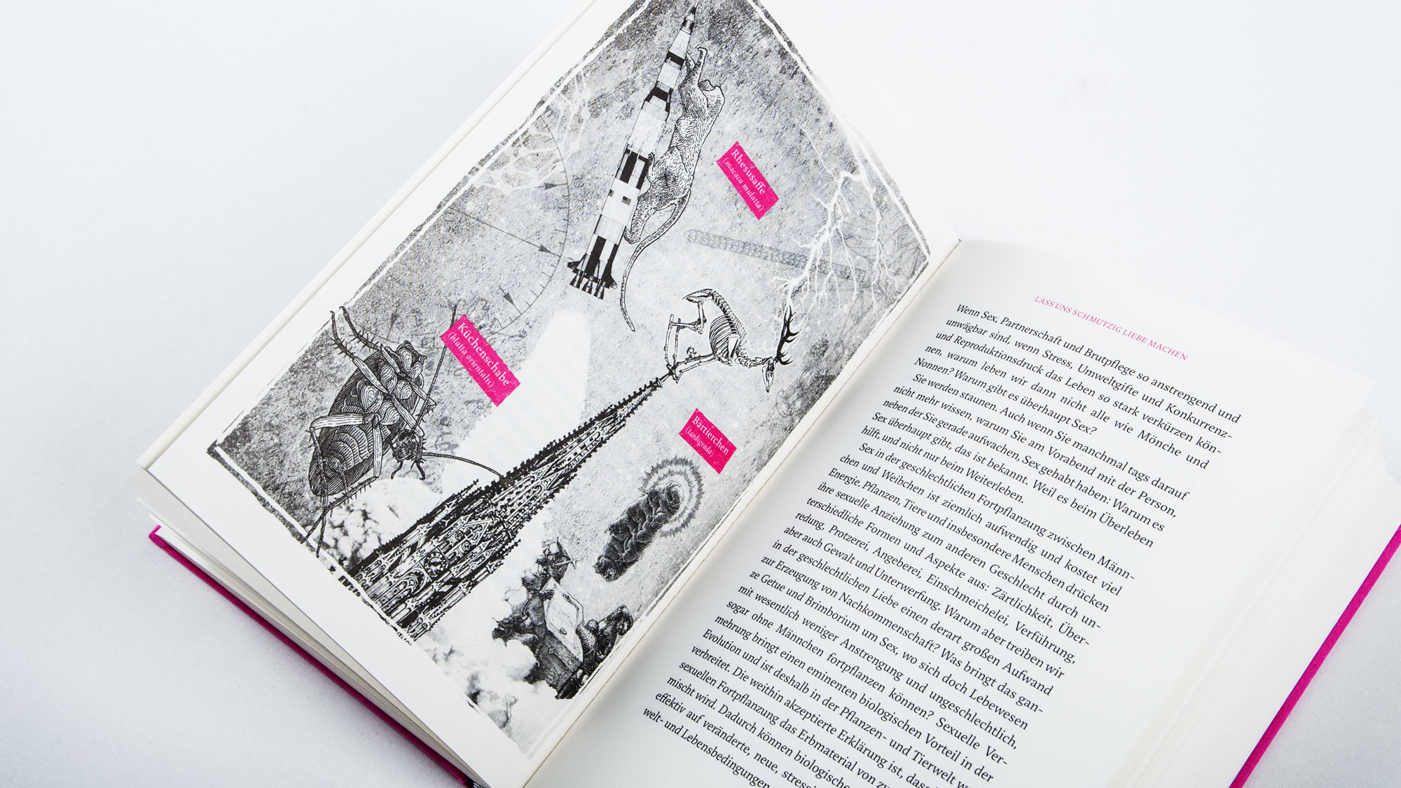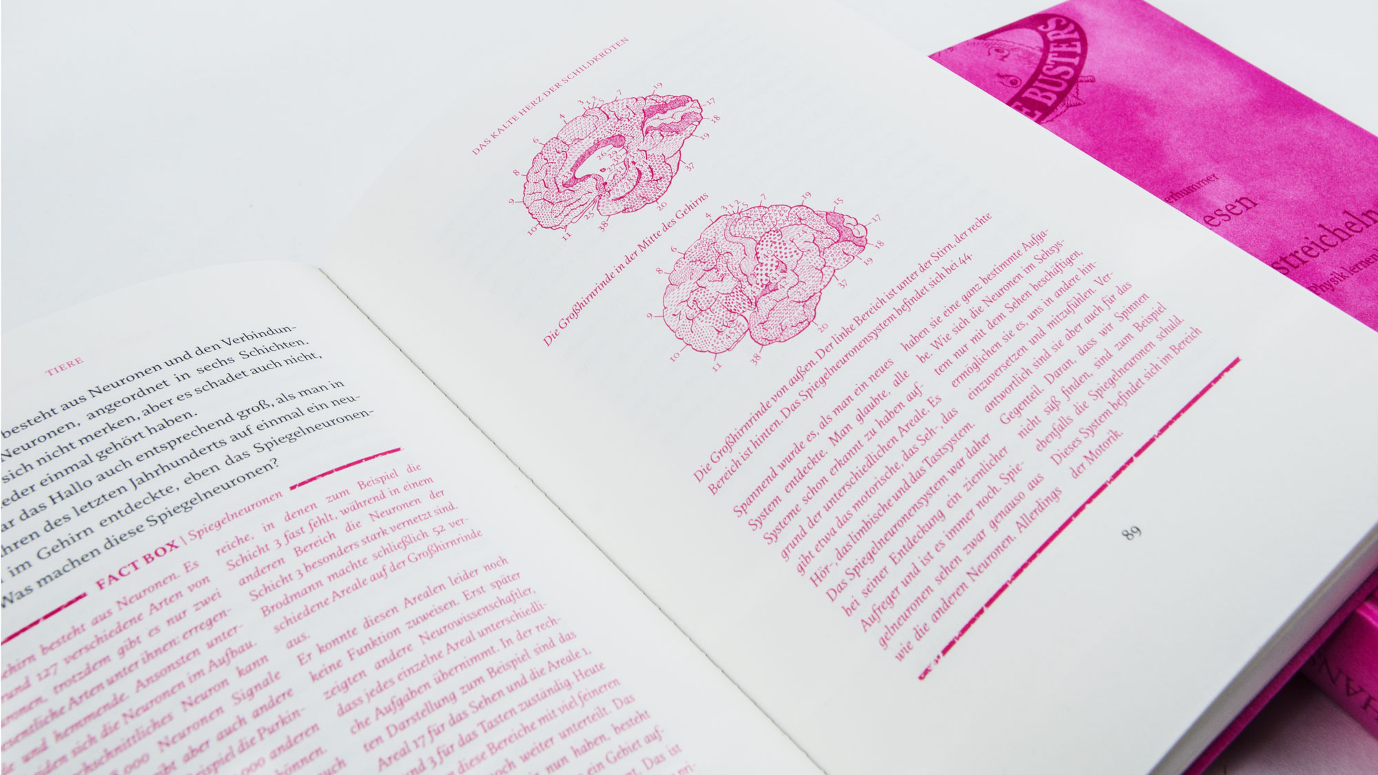 Science Busters is an Austrian science cabaret, and their humorous book Gedankenlesen durch Schneckenstreicheln (“Mind reading by caressing snails”) is full of fascinating scientific insights. Designed by Büro Alba, published by Carl Hanser Verlag GmbH & Co. KG.