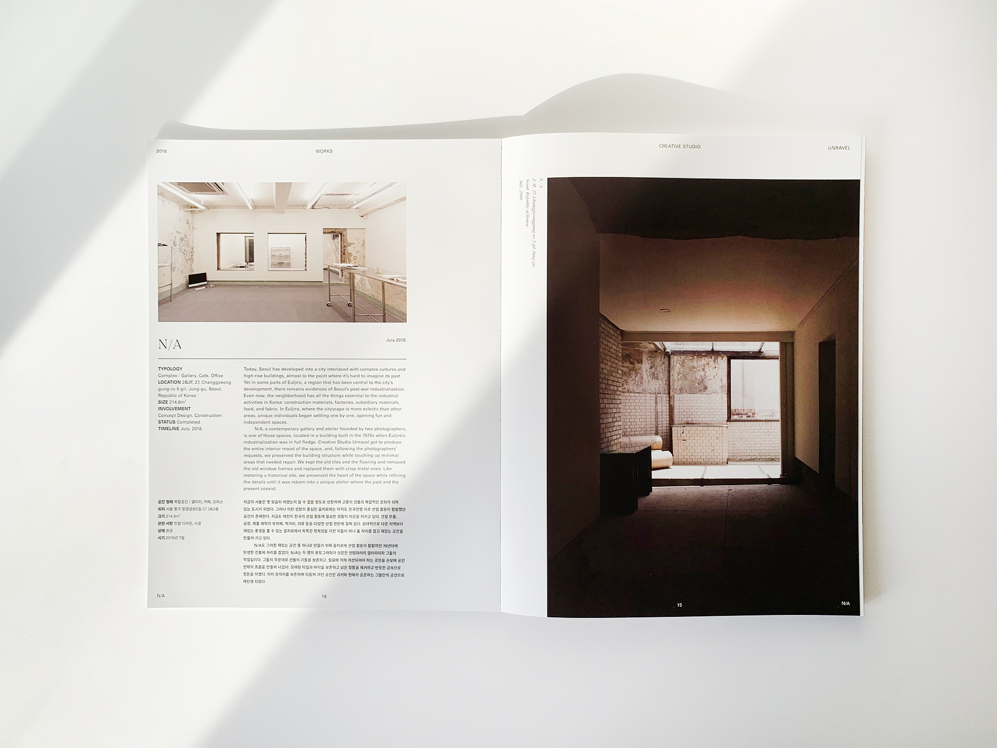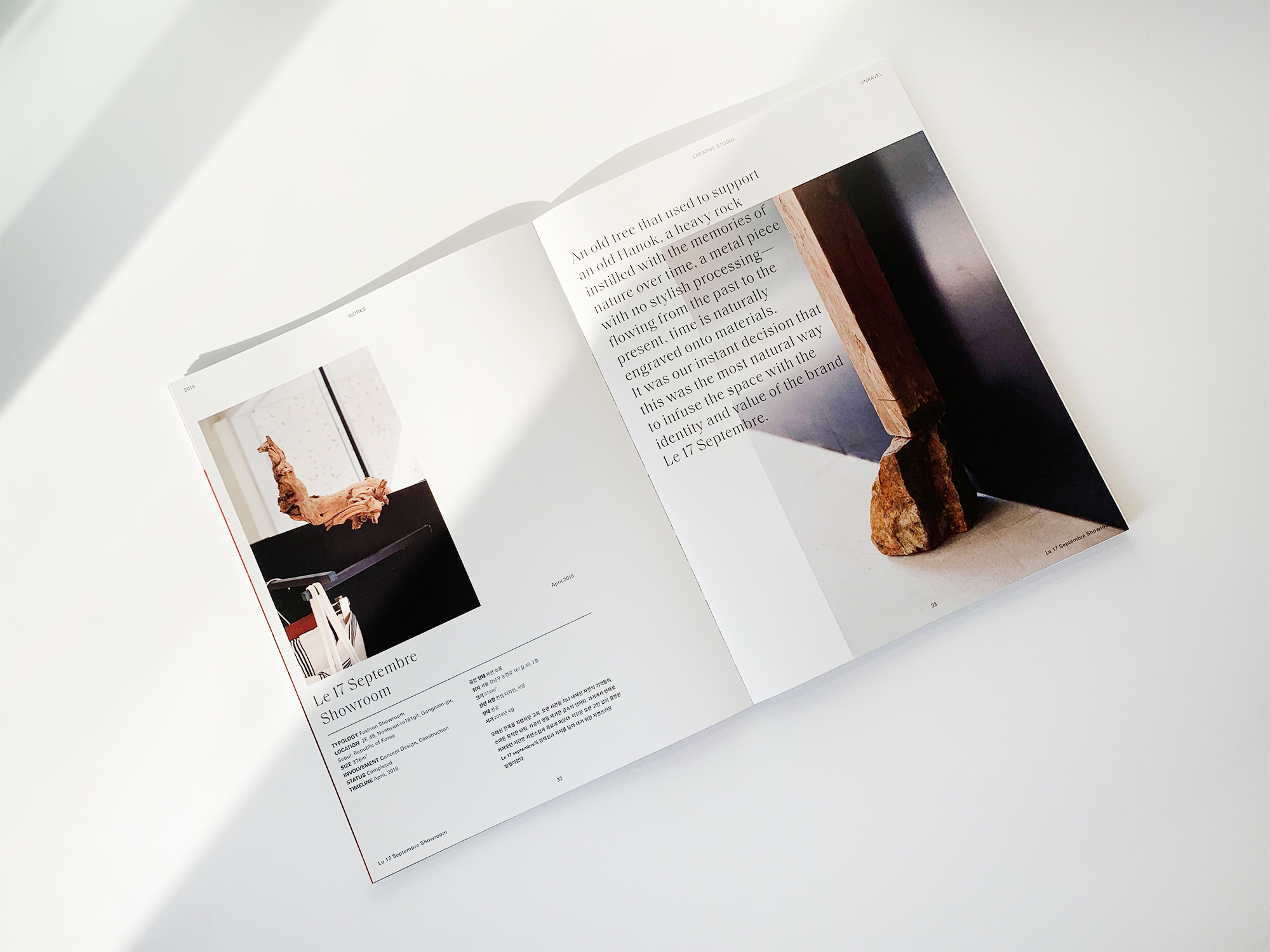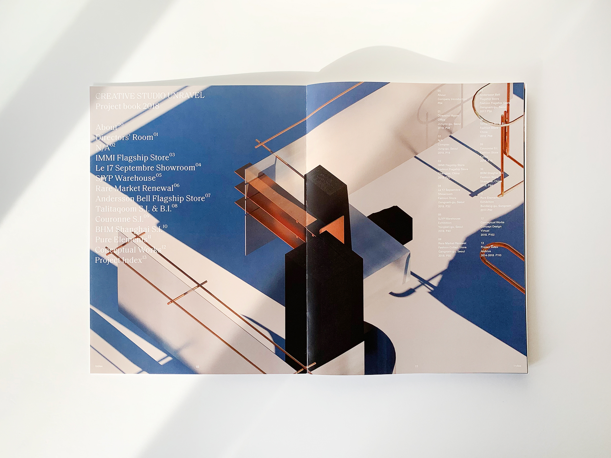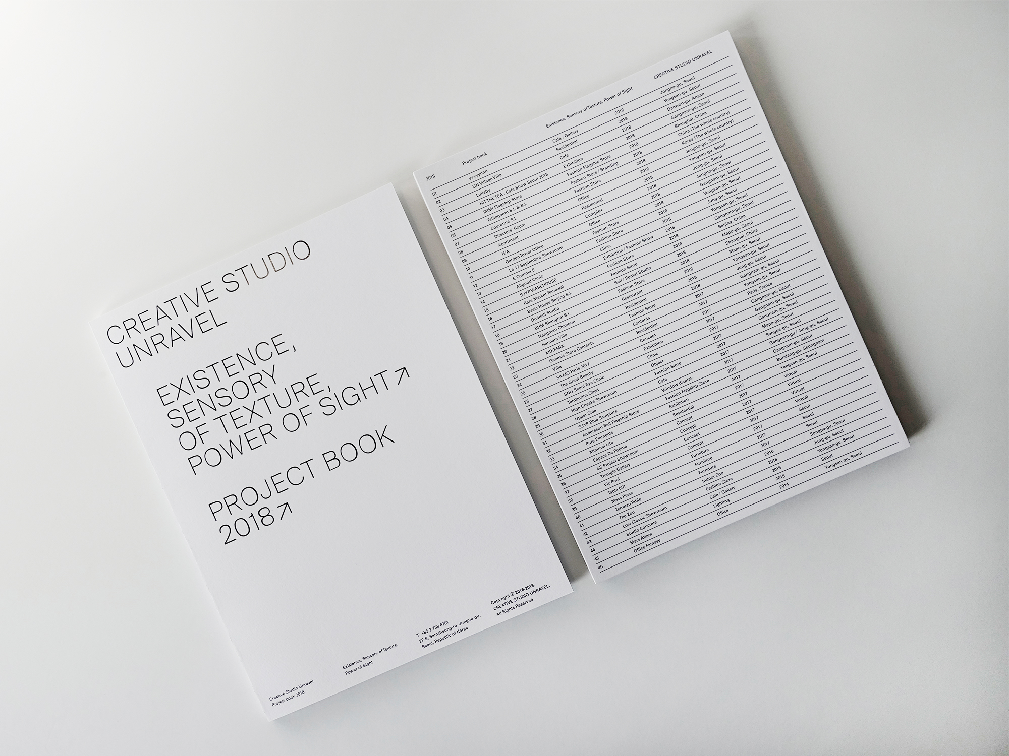 Creative Studio Unravel is a Seoul-based interior design studio, focused on creative spatial design solutions. Graphic designer Jaehoon Choi designed their visual Identity and the company’s new project book, archiving their works in 2018.