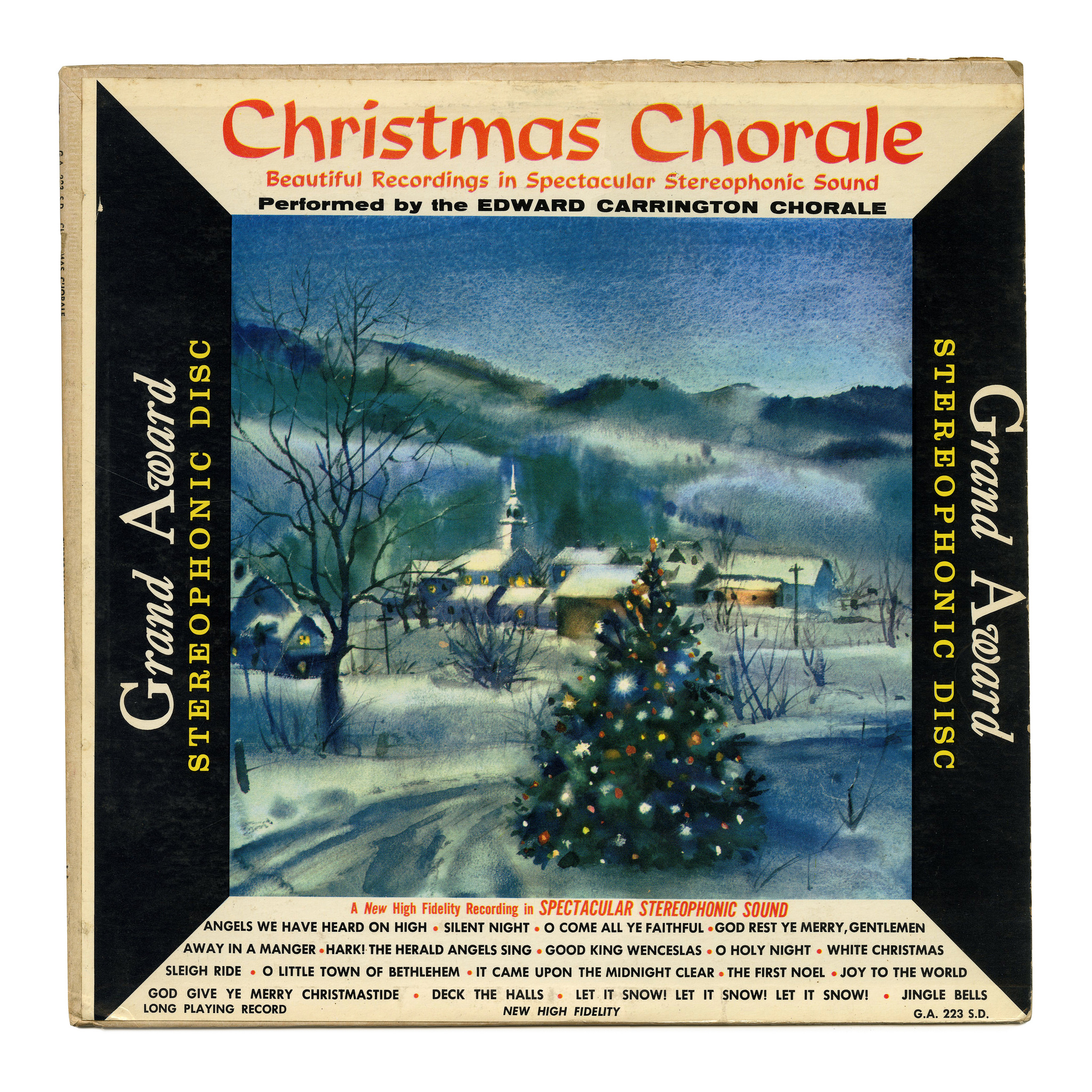 “Beautiful Recordings in Spectacular Stereophonic Sound. Performed by the Edward Carrington Chorale.” GA-223-SD. Released by Grand Award Records in 1958. Cover painting by Arthur Shilstone (b. 1922).