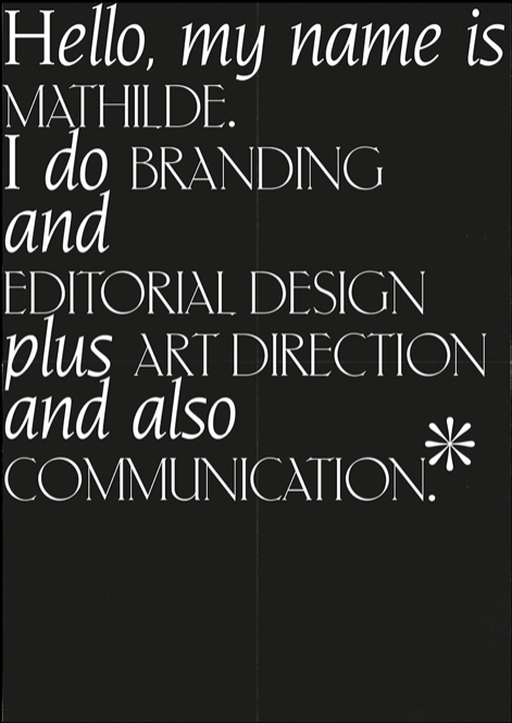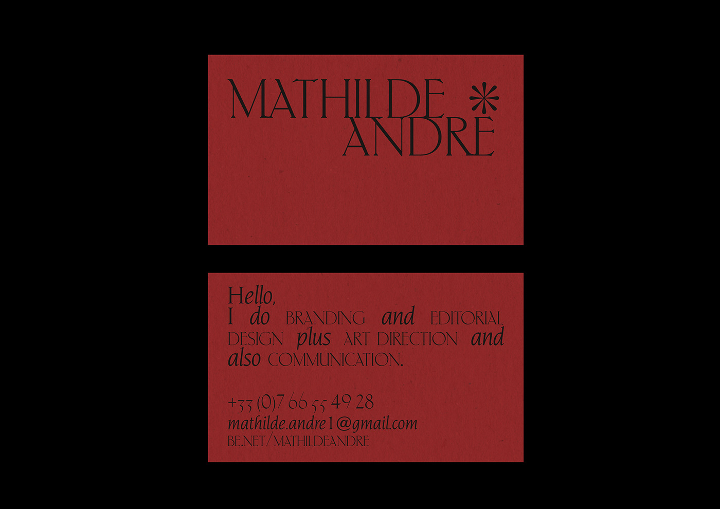 Mathilde André identity Contributed by Mathilde André on Dec 15th, 2018. Artwork published in October 2018. Source: www.behance.net Photo: Mathilde André. License: All Rights Reserved. Photo: Mathilde André. License: All Rights Reserved. Photo: Mathilde André. License: All Rights Reserved. Typefaces More about Antiqua RomanGet Antiqua RomanMore about ITC NovareseGet ITC Novarese Formats Branding/Identity (8431) Topics Graphic Design (3005) Designers/Agencies Mathilde André (3) Bureau Esthète (3) Tagged withbrands (1502)business cards (1534)stationery (805)letterheads (412)envelopes (257)typeface combinations (3934)asterisk (*) (234)self promotion (323)brown (188) Artwork location Belgium (429) Brussels (124) In Setsacid eleganz (Laurin Schuh) (23)Good simple fonts (Edward Tyler) (17)Latinidad (Enio Hernandez) (10) Post a comment Name Email – will not be published Website Your response Submit Comment More ITC Novarese in use The Drama of the Gifted Child by Alice Miller1992Neil StuartContributed by Joe Shriner This is Paradise by Will Eaves, Picador Paperback2013Jonathan PelhamContributed by Stephen Coles Riso ArborioPhoto(s) by Joe Clark on Flickr. Sponsor More in Graphic Design Typo’&!.,-:;?“2016Bureau 205Contributed by 205TF Staff Pick mobiLisons2015Florence BoudetContributed by Quentin Stavinsky European Design Festival 2019c. 2019Uniforma StudioContributed by Uniforma Studio Kalenderboek Stichting Print: 25 August2017Vincent MeertensContributed by Blaze Type More in Branding/Identity The White Boathouse2022Ceren Burcu TurkanContributed by Ceren Burcu Turkan ID Studio visual identity2018Izabela PiotrowiakUnwind StudioContributed by TINGE Studio Kimoa identity2020Murray Branding & DesignPaula ChalkhoPato B.Contributed by Murray Branding & Design Grape Festival 22 visual identity2022Damian PastirčákContributed by Nguyen Gobber More Fonts In Use Digital Precision CRT Display Type 30 Manual1964Contributed by Stephen Coles Staff Pick Nederlands Fotomuseum2007Ping PongStudio BeigeContributed by Florian Hardwig Staff Pick Burglar series by Lawrence Block, Random Housec. 1977Emanuel SchongutRichard AdelsonContributed by Florian Hardwig Staff Pick Impulse magazine, 2018 redesign2018Max NellesTerritoryContributed by TypeMates Staff Pick