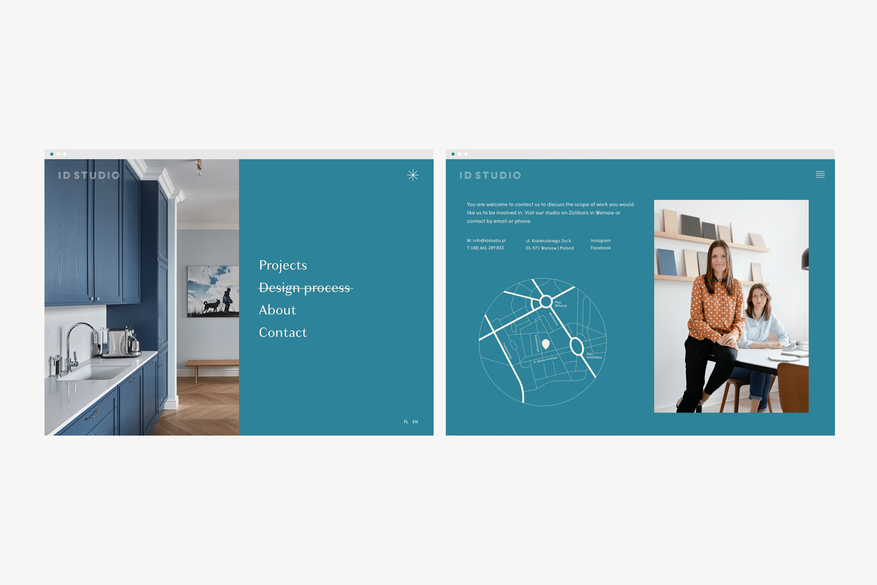 ID Studio is a Warsaw-based architectural studio characterised by its holistic design approach. Unwind Studio aimed to design a new visual identity and a website that will reflect its practice. The logotype letters have been customised. This allowed us to work with unique typography, consisting of a double line, refering to technical drawings used in architectural plans. The rest of the visual identity uses Wigrum Regular. With its sensitive geometry, it highlights ID Studio’s technical know-how combined with an individual client approach.