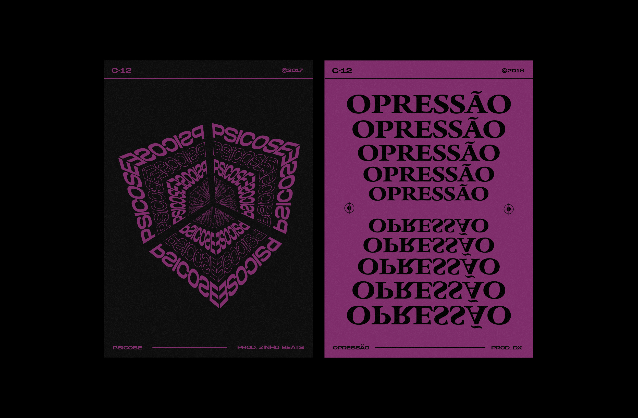 Branding and visual identity for Brasilian rap group C12. Posters, clothing, album artwork, accessories and more were developed. The goal of the project is to improve the group’s communication with the public, bringing a contemporary look and increasing its visibility.