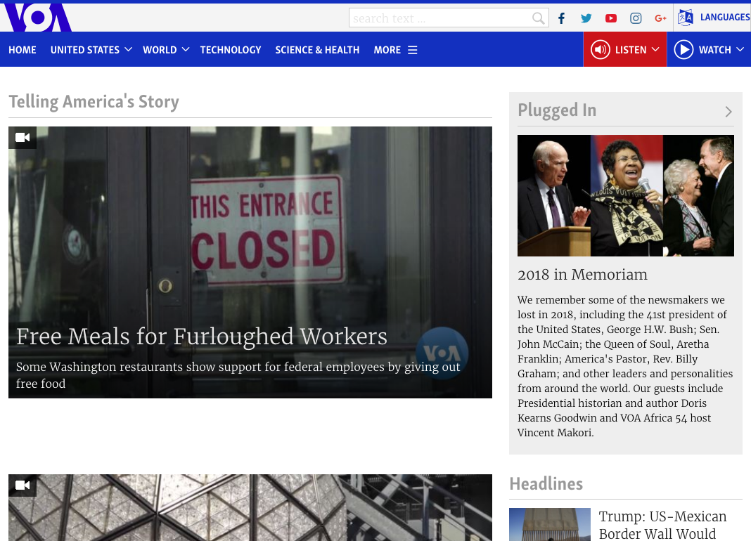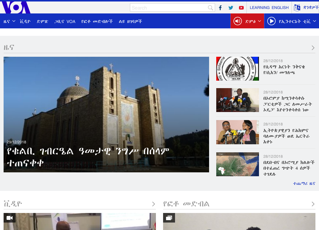 A selection of the many language-specific websites of the VOA (Voice Of America) news service, on December 31. Among the used typefaces are Merriweather by Sorkin Type and Rosetta Type’s Skolar, Skolar Sans andNassim.